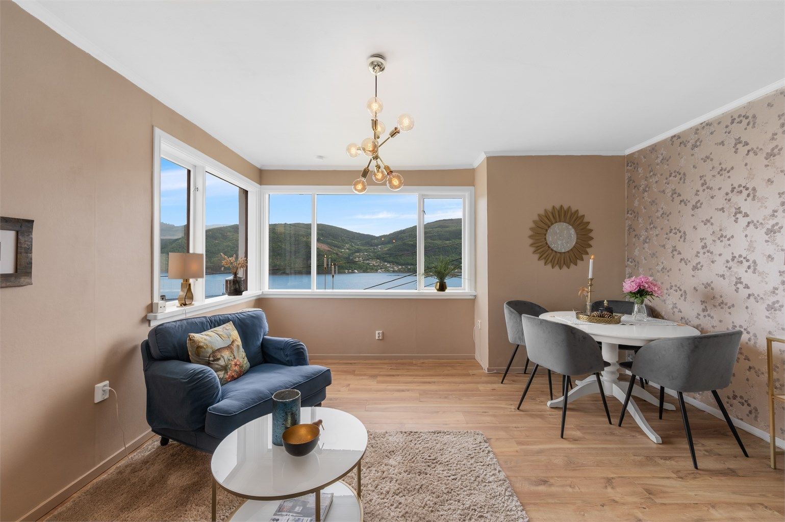 Leiligheten er pent oppusset i nyere tid og byr på en nydelig sjøutsikt.