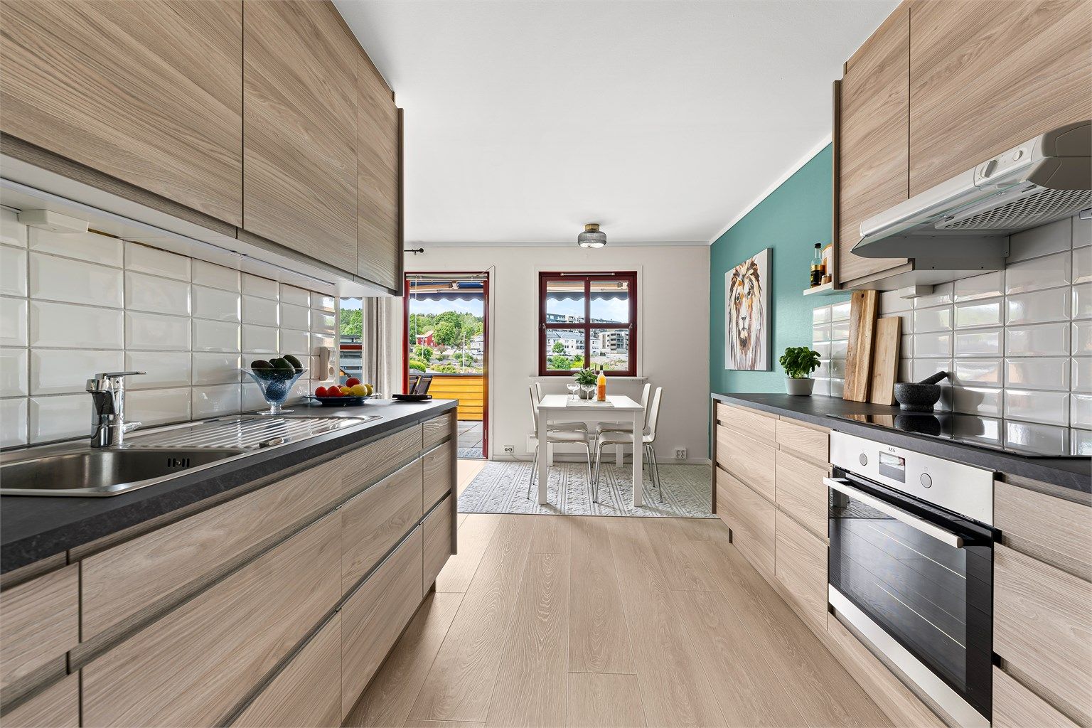 Lettstelt eierleilighet med god planløsning og trappefri adkomst via heis i bygget. Her bor du med alle daglige servicetilbud innen kort avstand, blant annet dagligvarebutikk, Vinmonopolet, delikatessebutikken Lille Handleri, Hole Optikk, Vik Restaurant og Bar, tannlegesenter, solstudio og brukthandel.
