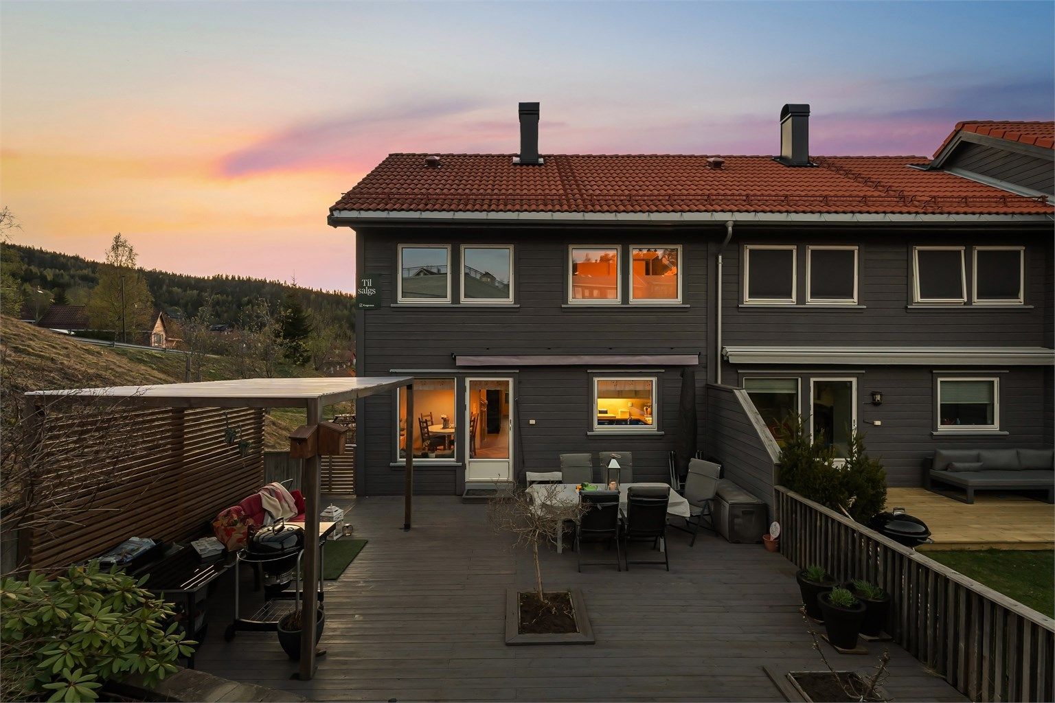 Et moderne og attraktivt enderekkehus over tre plan fra 2013. Boligen har en lys og trivelig atmosfære, med en gjennomtenkt og familievennlig planløsning. Her får du romslige og gode oppholdsrom, egen soveromsavdeling med bad i 2. etasje, samt en lys og luftig hovedetasje med utgang til solrike og skjermede uteplasser. Underetasjen byr på to ekstra soverom, bad og stor innvendig bod. På forsiden finner du en steinlagt gårdsplass med stor utebod, biloppstillingsplass med ladeboks og tilhørende garasjeplass i felles anlegg.
