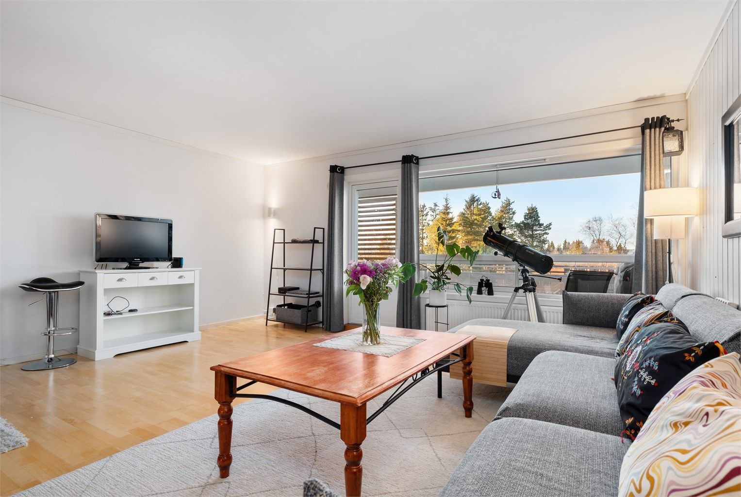 Lys og luftig stue med gode møbleringsmuligheter