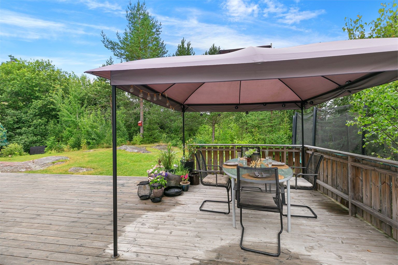 Velkommen til Karuslia 28, en romslig, fleksibel og tiltalende enebolig over tre etasjer. Huset har en unik beliggenhet, øverst i en rolig blindvei med grense til skogen. Her bor man skjermet, men sentralt, med gangavstand til skole, butikker, godt busstilbud og T-bane. Uten direkte gjenboere har boligen en stor og usjenert hagehage med sol fra morgen til kveld. Solen nytes best på en flott terrasse med ulike soner.