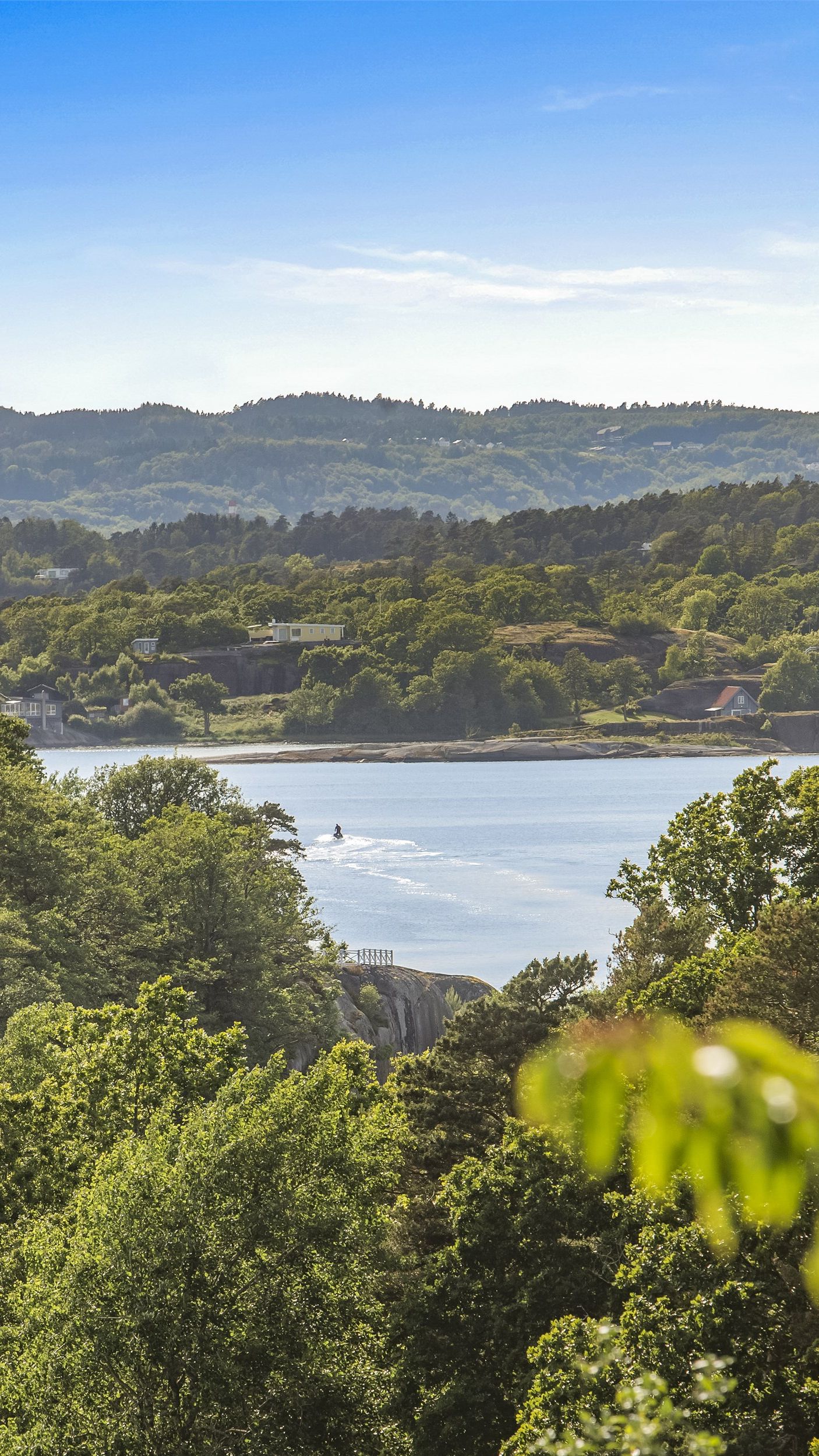 Hytta har en usjenert og fri beliggenhet med sol fra morgen til sent på kveld. Fra hyttas terrasse mot vest får du nydelig utsikt over landskapet og en kveldshimmel som er i stadig endring, samt et godt gløtt til sjøen. Eiendommen ligger skjermet og godt tilbaketrukket fra veien så de minste kan leke trygt i gode omgivelser. En kort rusletur fra hytteveggen finner du flott friareal med flere barnevennlige småstrender og gresslette. Her er det også gode bademuligheter på både brygge og strand. Det medfølger rett til båtplass på fellesbrygge. Hytta har innlagt kommunalt vann og avløp. Det er bilvei frem med gode parkeringsmuligheter på tomten.