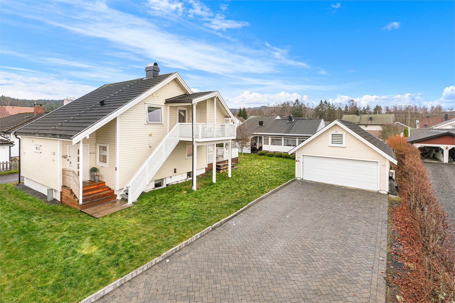 Dobbelgarasje fra 2019 med elbillader og lagringsloft, samt stor gårdsplass