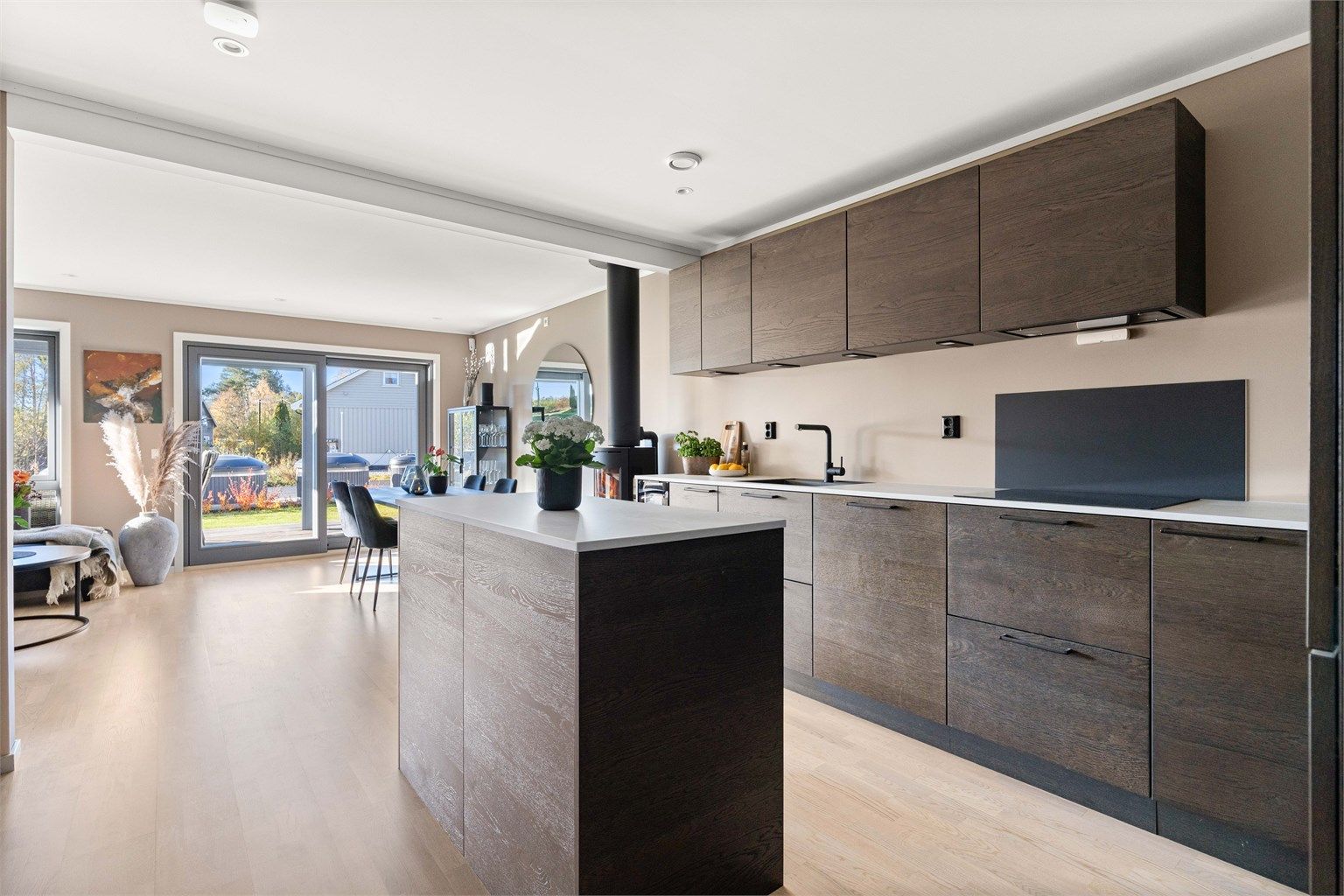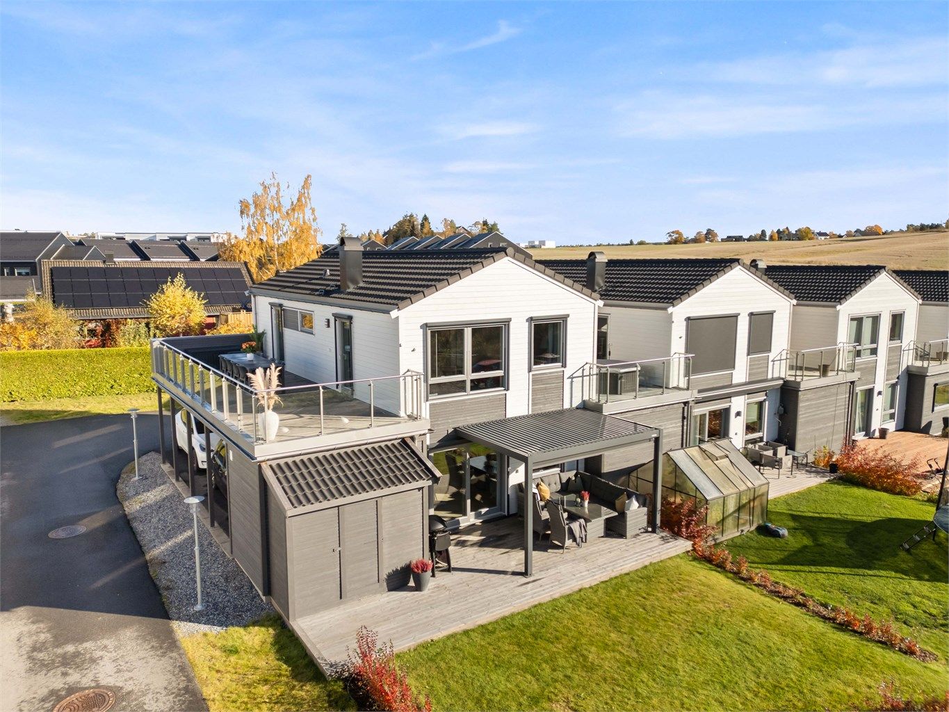 Velkommen til en moderne og innbydende bolig med gjennomført standard og smarte løsninger. Hjemmet byr på et stilrent Kvik-kjøkken med kjøkkenøy, integrerte hvitevarer og vinskap – perfekt for både matlaging og sosiale sammenkomster. Stuen har store vindusflater, peis og utgang til en solrik platting, mens tre romslige soverom gir gode private soner. Boligen har to delikate bad samt praktisk vaskerom. Uteområdene er godt utnyttet med både platting og balkong som gir sol gjennom hele dagen. Carport med elbillader (2024) samt to ekstra utvendige boder, gir rikelig med oppbevaringsplass. En bolig som kombinerer funksjonalitet, komfort og moderne design – klar til å flyttes rett inn i.