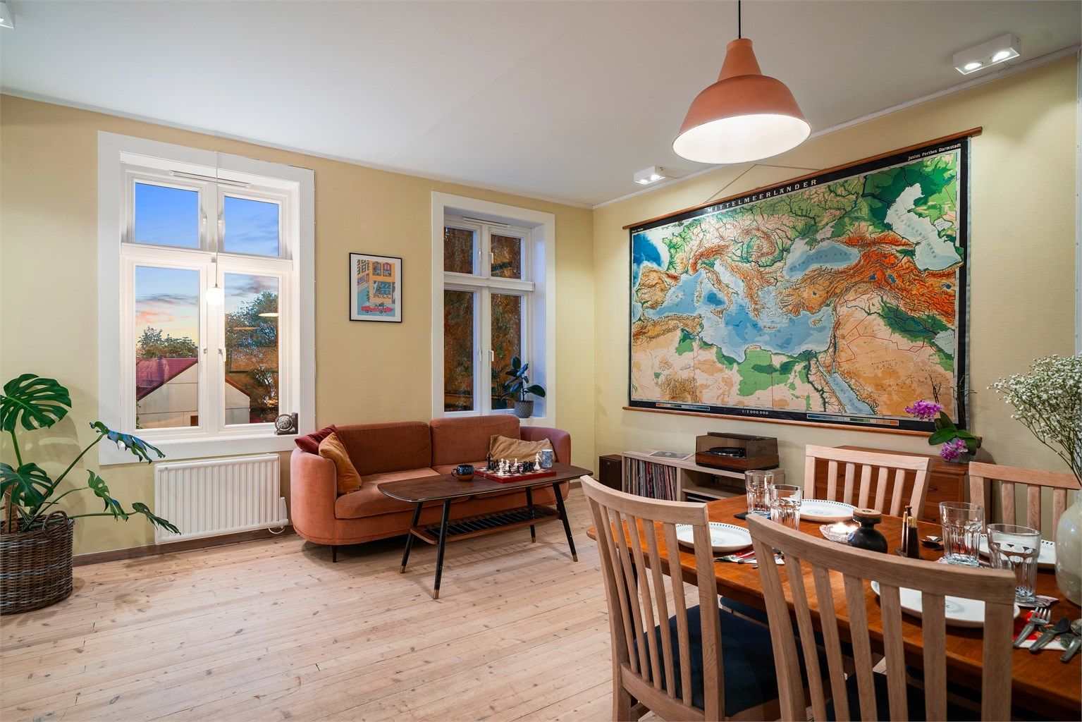 Lun og innbydende leilighet med en svært god planløsning og gjengs god standard. Boligen byr på klassiske detaljer som god takhøyde, masse naturlig lysinnslipp fra store vindusflater og originale tregulv.