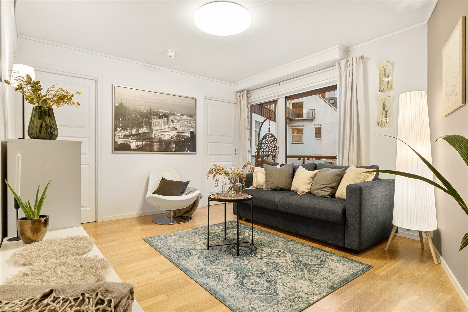 Perfekt beliggende 2-roms eierleilighet i bygg fra 2008 med to uteplasser og kort gangavstand til byens kulturliv