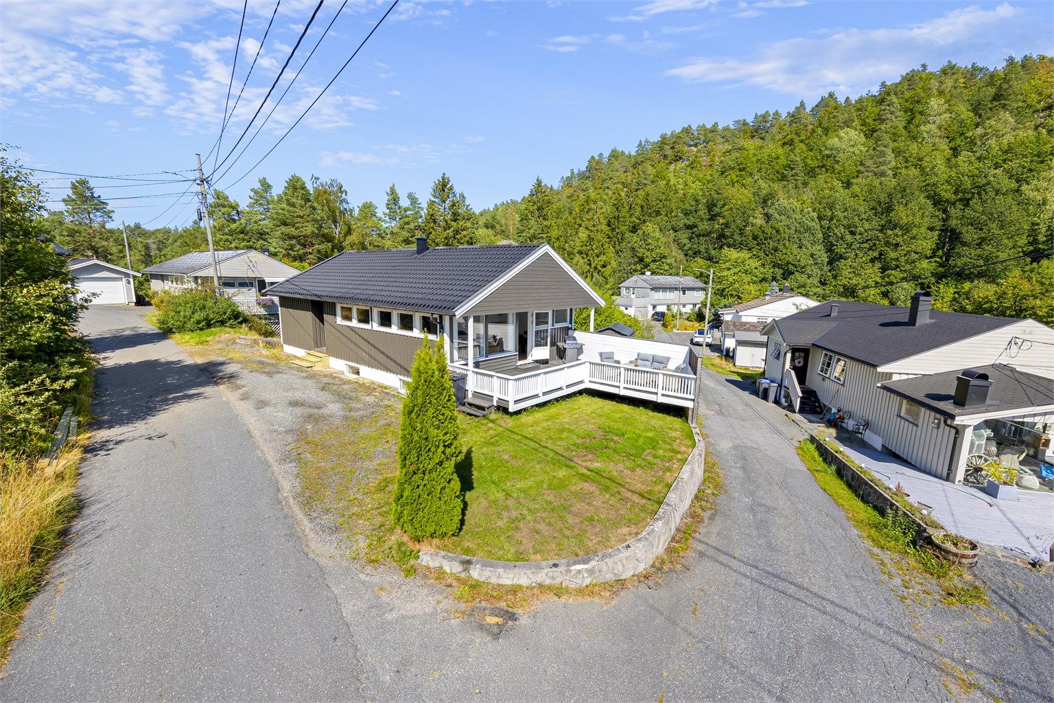Brunåsbakken 53 ligger fint til på toppen av Brunåsen med noe utsikt, gode solforhold og i et etablert nabolag. Sola skinner på eiendommen fra tidlig morgen til ca. kl. 20:45 midtsommers. Det tilhører redskapsbod, carport og stor hage, samt muligheter for utleie av underetasjen ved enkelte tilpasninger. Boligen har nytt bad, kjøkken, varmepumpe, overflater, omsøkt/godkjent underetasje, ny terrasse, nye glass i vinduer, etterisolert, nytt elektrisk anlegg, samt hovedinntak og mye mer. Fra boligen er det gangavstand til både skole og by. Det ble satt opp ny terrasse utenfor stua i nyere tid.