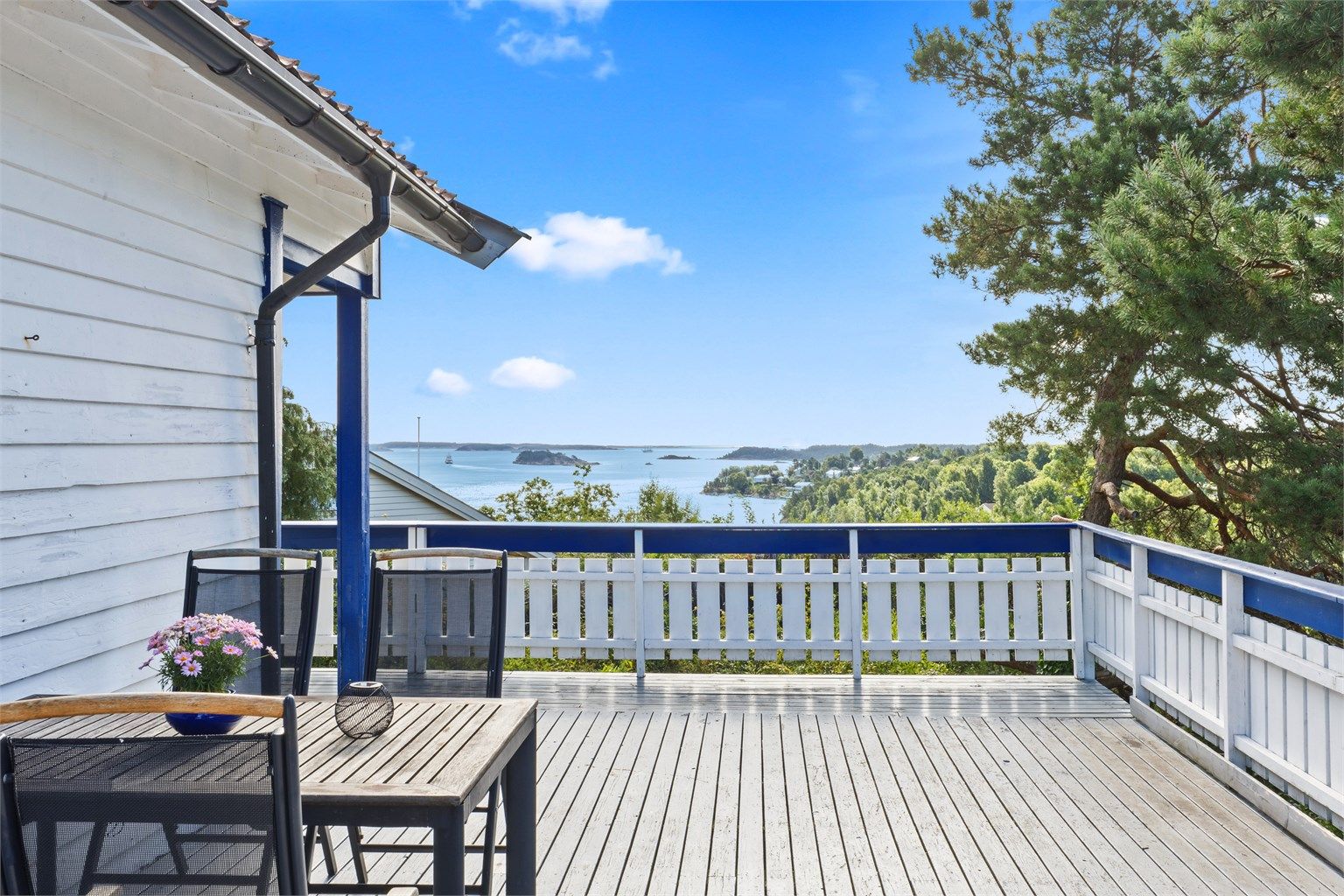 Tomten byr på høytliggende utsikt, usjenerte uteområder, stor veranda og uteområde med svært gode sol- og utsiktsforhold. Her har du også garasje og god biloppstillingsplass i en romslig asfaltert innkjørsel.