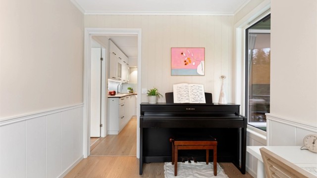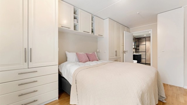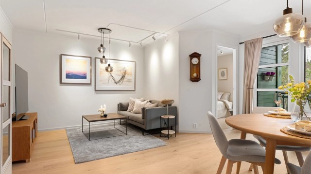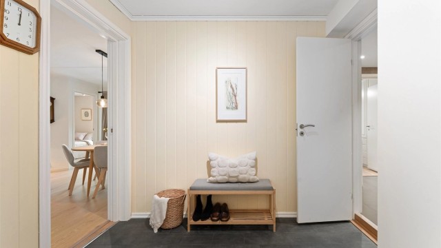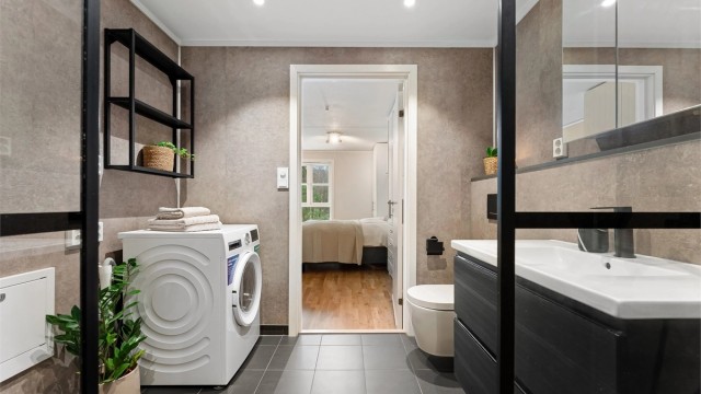 Leiligheten har en god og gjennomtenkt planløsning med åpen stue- og kjøkkenløsning som skaper en lys og sosial sone. Fra stuen er det utgang til en vestvendt balkong. Området er ideelt for familier, med gangavstand til barnehager, skoler, buss og det sjarmerende handelsstedet Bærums Verk, som byr på alt du trenger i hverdagen.