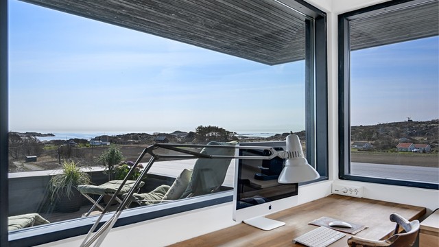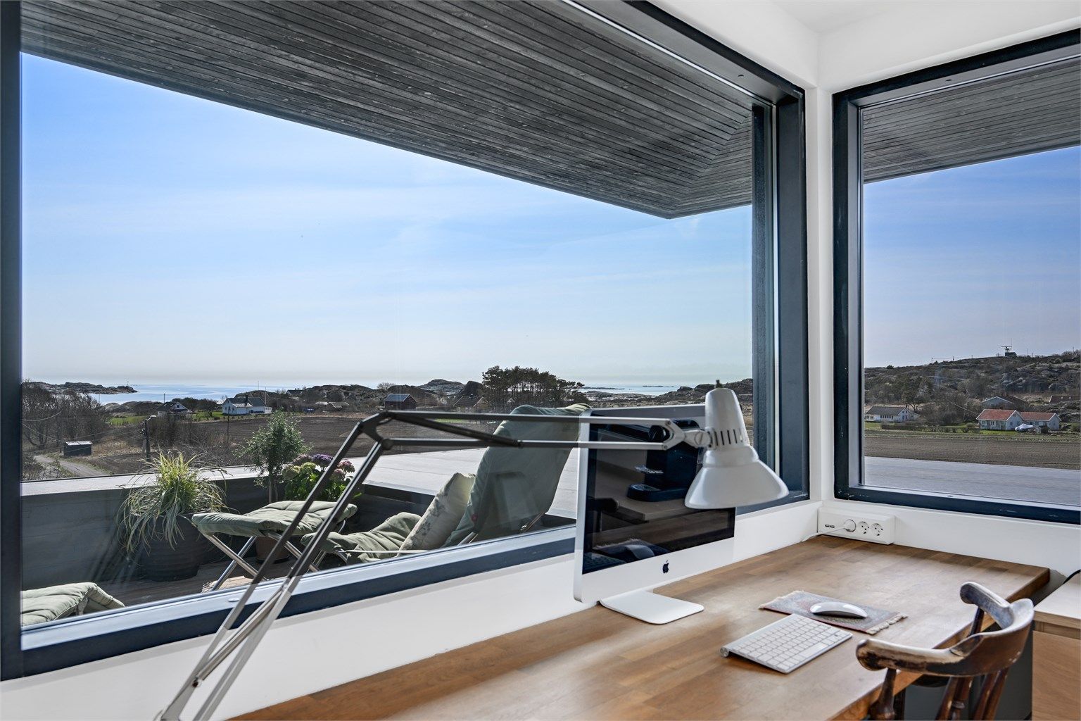 Rå og særegen funkisbolig, arkitekttegnet og spektakulært plassert på toppen av fjell på Hvasser Syd. Her bor du tett på havet, med strender og skjærgård like ved – og med en utsikt som må oppleves.
