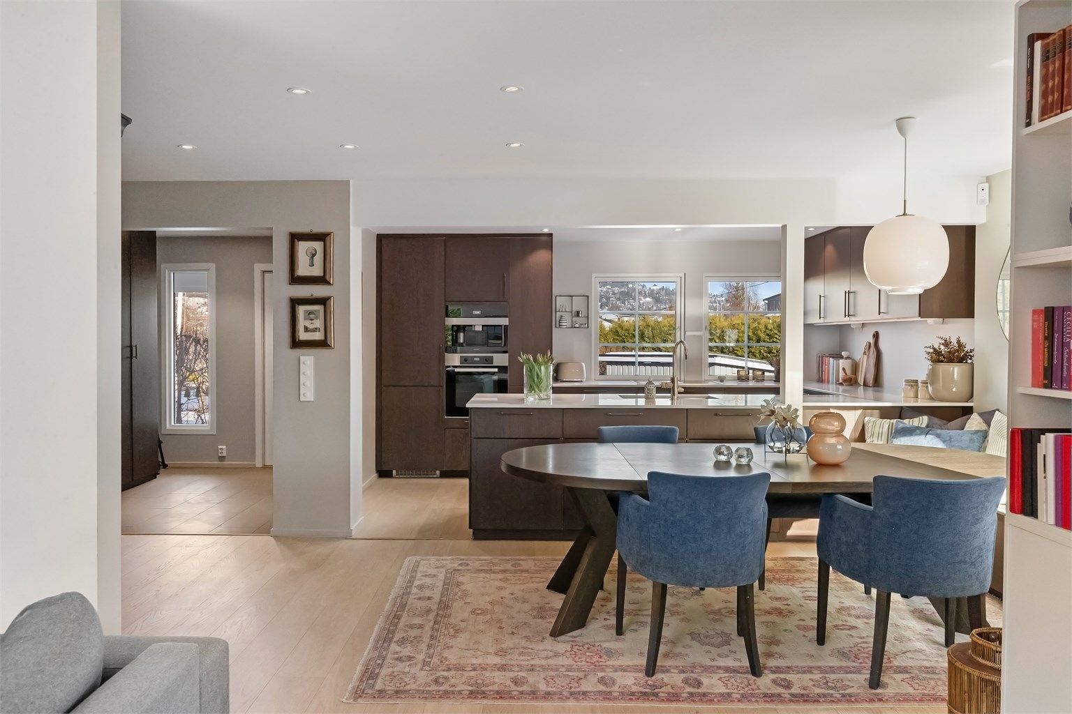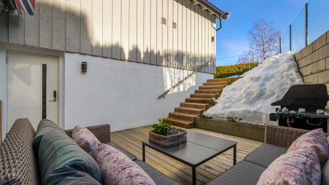 Denne flotte familieboligen ble pusset opp innvendig i 2021/2022 og holder en fin, moderne standard hvor det er enkelt å trives. Barnevennlig planløsning med entré og stort oppholdsrom med stue og kjøkken i 1. etasje, soveromsavdeling med tre soverom og bad i 2. etasje, og hybel i kjelleren med stue, kjøkken, soverom og bad. Boligen har nydelige uteplasser i alle etasjer, samt garasje.