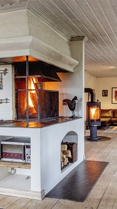 - Kjøkken håndbygget av møbelsnekker, rikt utstyrt kokesone integrert i ildsted