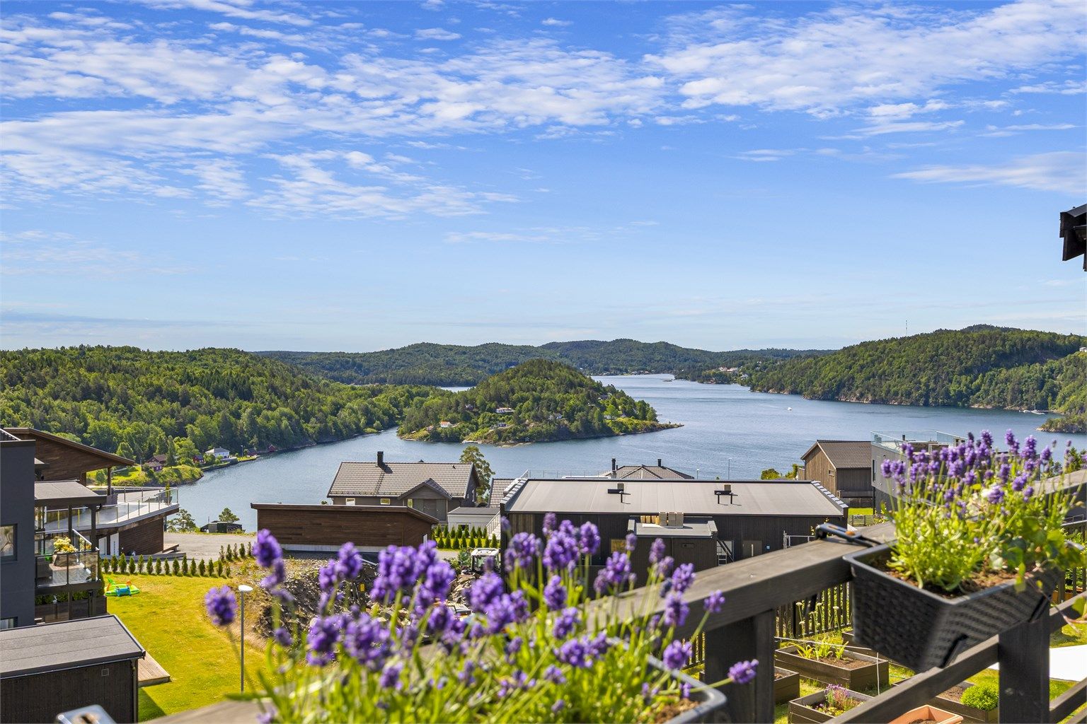 Eneboligen har smarte løsninger og eksklusiv innredning i flere rom. Boligen inneholder tre soverom, stor stue med åpen løsning til kjøkken, bad/vaskerom nede, wc oppe, to boder og entré, samt garasje med takterrasse over. Her kan man nyte Tvedestrandsfjorden i utsikten og sola på terrassen. Eiendommen bader i sol fra ca. kl. 08-21:00 midtsommers. Det er kort vei til sjø og sentrum fra boligen, ca. 15 minutter til fots og ca. 4-5 minutter i bil. Eiendommen har både hage og god plass til flere biler. Det er en flott opparbeidet tomt med murer, rekkverk, asfaltert innkjørsel og grus. Det er muligheter for vinterhage og jacuzzi på takterrassen (forsterket).