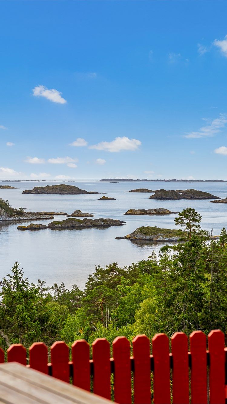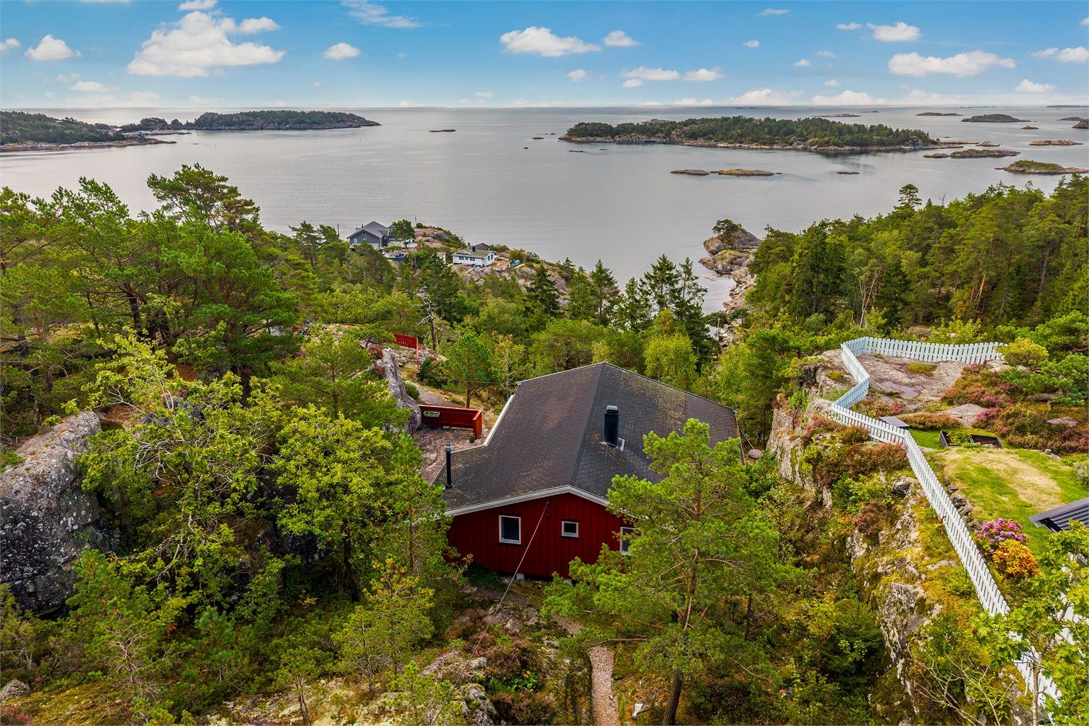 Hytta ligger høyt og fritt med gode solforhold og kort vei ned til sjøen. Rett ned for hytta er det fine svaberg og en liten sandstrand. Her nede har hytta også rett til båtfeste. Fra parkeringen er det ca. 300 meters gange på fin sti. Hytta som er oppført i 1986/87 og er arealeffektiv med soverom i bakkant og oppholdsrom i front med store vindusflater som gir lys og utsikt. Hytta ble påbygget med enkelt bad og ekstra soverom i 2006. Rundt hytta er finnes terrasseflater og frittliggende uteplasser.