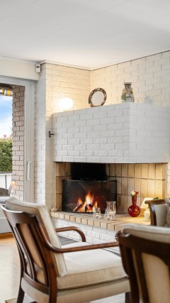 Åpen peis i stuen og luft-til-luft varmepumpe fra 2020