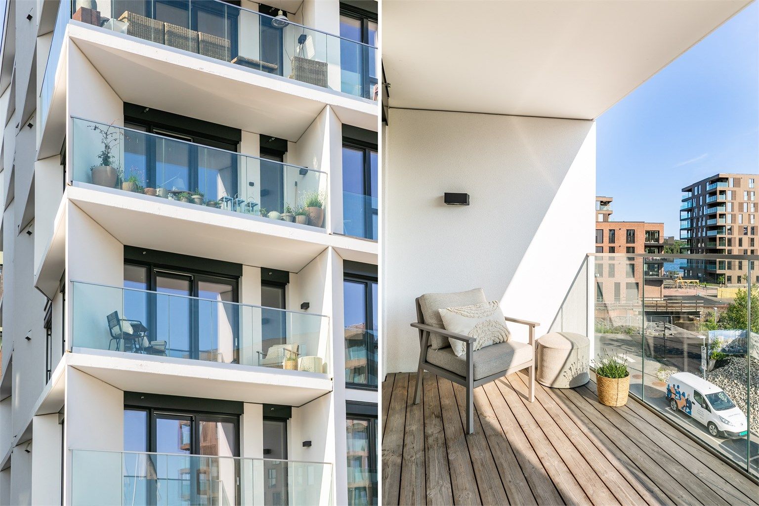 Lys, moderne og usjenert 3-roms hjørneleilighet på Verket med sjøutsikt i alle rom. Felles takterrasse med kjøkkenhage.