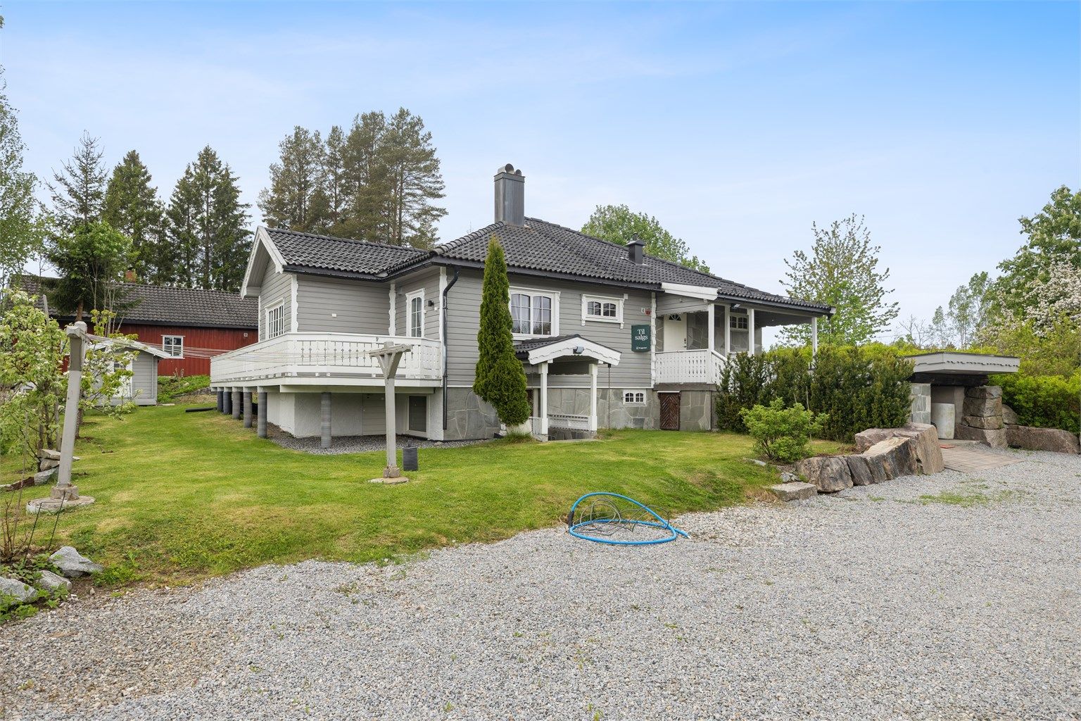 Familievennlig og romslig enebolig med god plass til en stor familie. Eiendommen har solrike uteplasser og en stor tomt med hage, perfekt for både avslapning og lek.