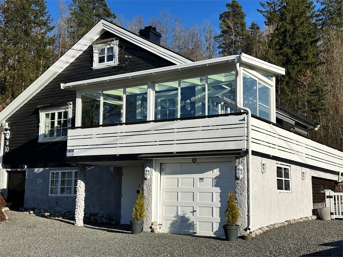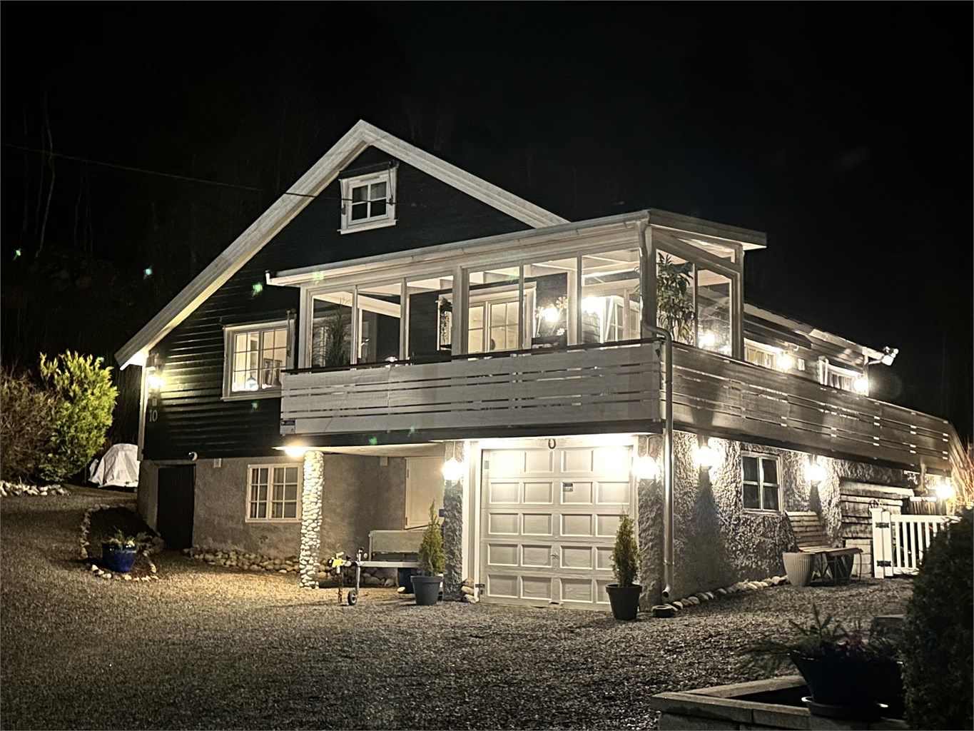 Landlig og sentral eiendom med særdeles gode solforhold, stor tomt og eget verksted i kjelleren.