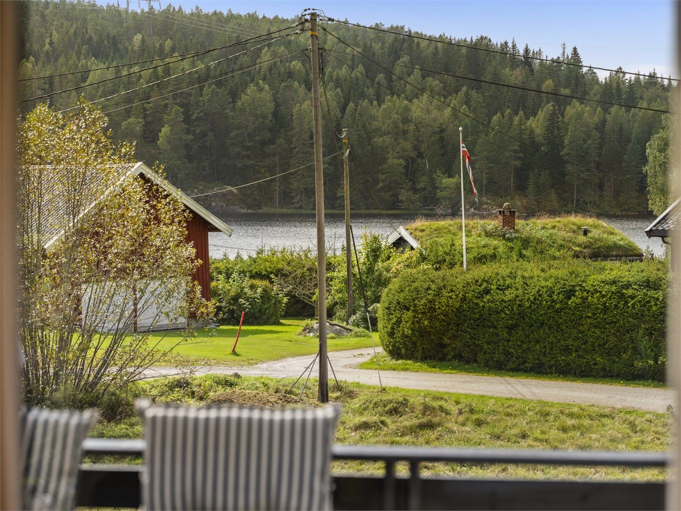 - Ved stranden er det brygge med båtplass og gressplen med sittegrupper