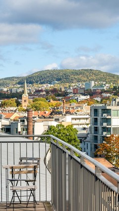 Eiendommen har en svært sentral beliggenhet og fremstår som både lys og romslig, blant annet takket være god takhøyde som gir en luftig følelse. Planløsningen er godt gjennomtenkt slik at leiligheten oppleves som åpen og større enn den faktisk er og den fine takterassen er et stort pluss. Badet er romslig med et stort speil, og boligen holder godt på varmen om vinteren, samtidig som soverommet forblir behagelig kjølig på sommeren.