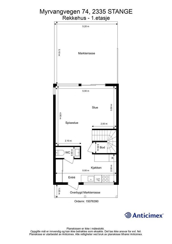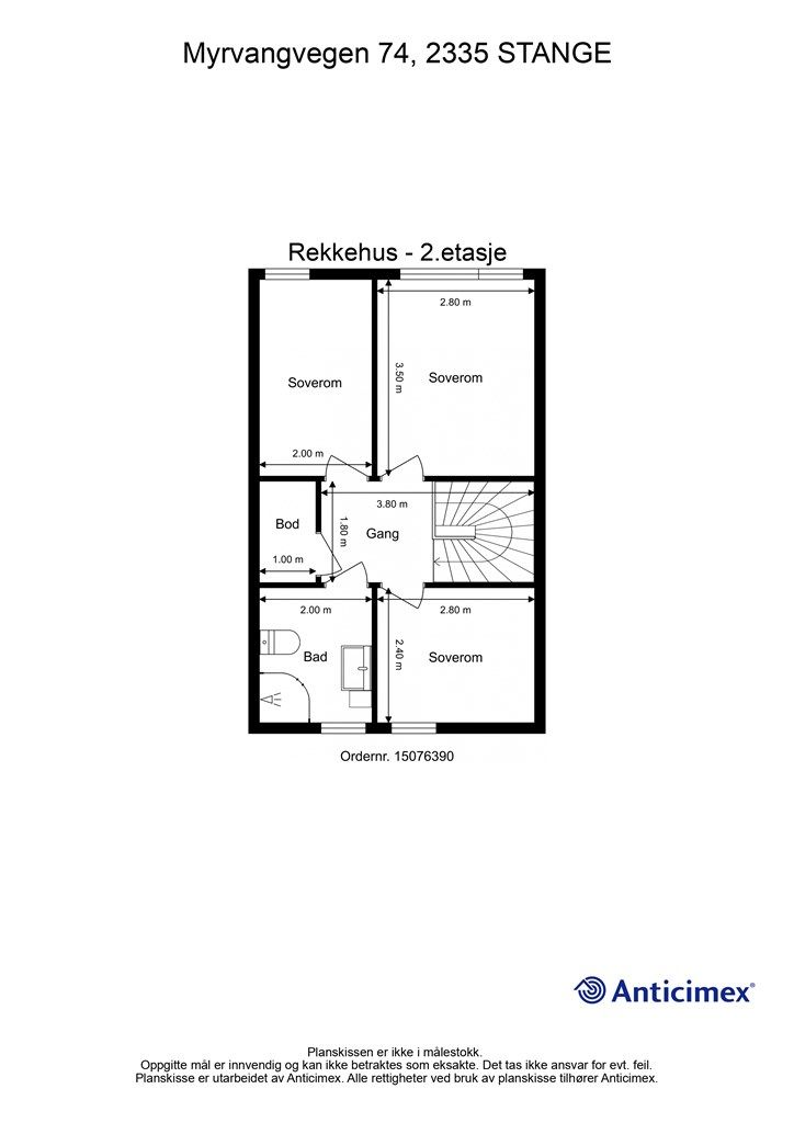 Myrvangvegen 74 er et lettstelt og moderne enderekkehus over 2 plan fra 2015. Her bor man i etablert boligområde med nærhet til lekeplass og ca. 2 km til sentrumskjernen i Stange. 1. etasje inneholder entré med fliser på gulv, kjøkken i egen sone, stue/spisestue, toalettrom og praktisk bod. 2. etasje inneholder gang, 3 soverom, baderom og bod. Fra stue er det utgang til en stor terrasse med gode solforhold og plass til flere møbleringssoner - en fin forlengelse av stuen i sommerhalvåret. Samt man har overbygd terrasse ved boligens inngangsparti med plass til mindre møbleringssone. Det er gjennomgående lyse og tiltalende overflater i hele boligen, varmepumpe og utvendige persienner på vinduer sør/vest i 2. etasje. Utendørs biloppstillingsplass og sportsbod i felles uthus rett ved boligen.