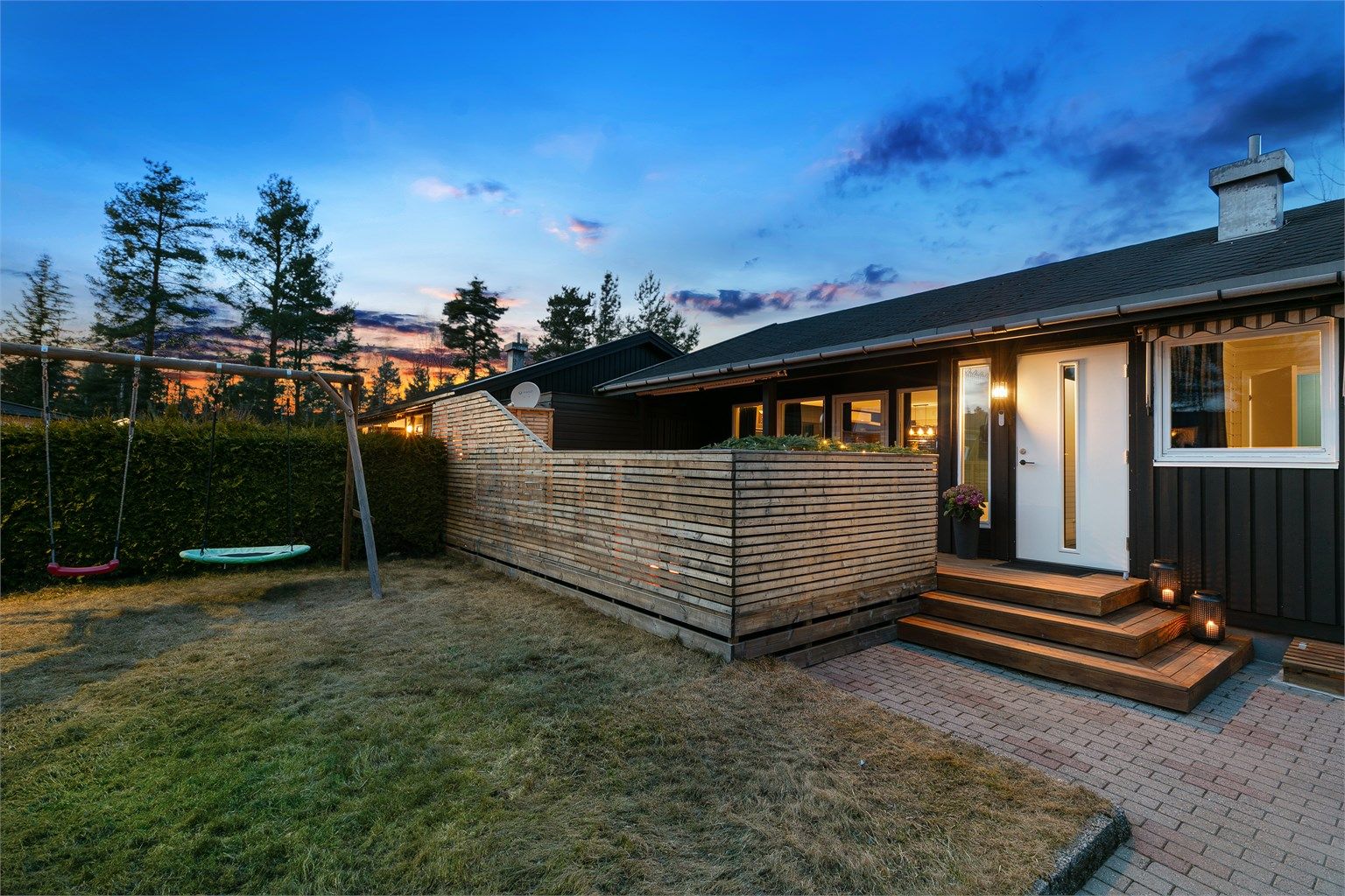 Velholdt kjedet enebolig med godkjent utleiedel i rolig og barnevennlig område. Stor, pent opparbeidet tomt med solrike uteplasser på begge sider. Boligen er oppgradert i 2019 og fremstår moderne og innflyttingsklar. Hoveddelen har åpen stue-/kjøkkenløsning, helfliset bad og to soverom. Utleiedelen i underetasjen har egen inngang, kjøkken, stue, bad og to soverom. Leieinntekt på 11 000 kr/mnd gir gode muligheter for å redusere boutgifter betydelig – en bolig som kombinerer god standard, fleksibilitet og solide økonomiske fordeler