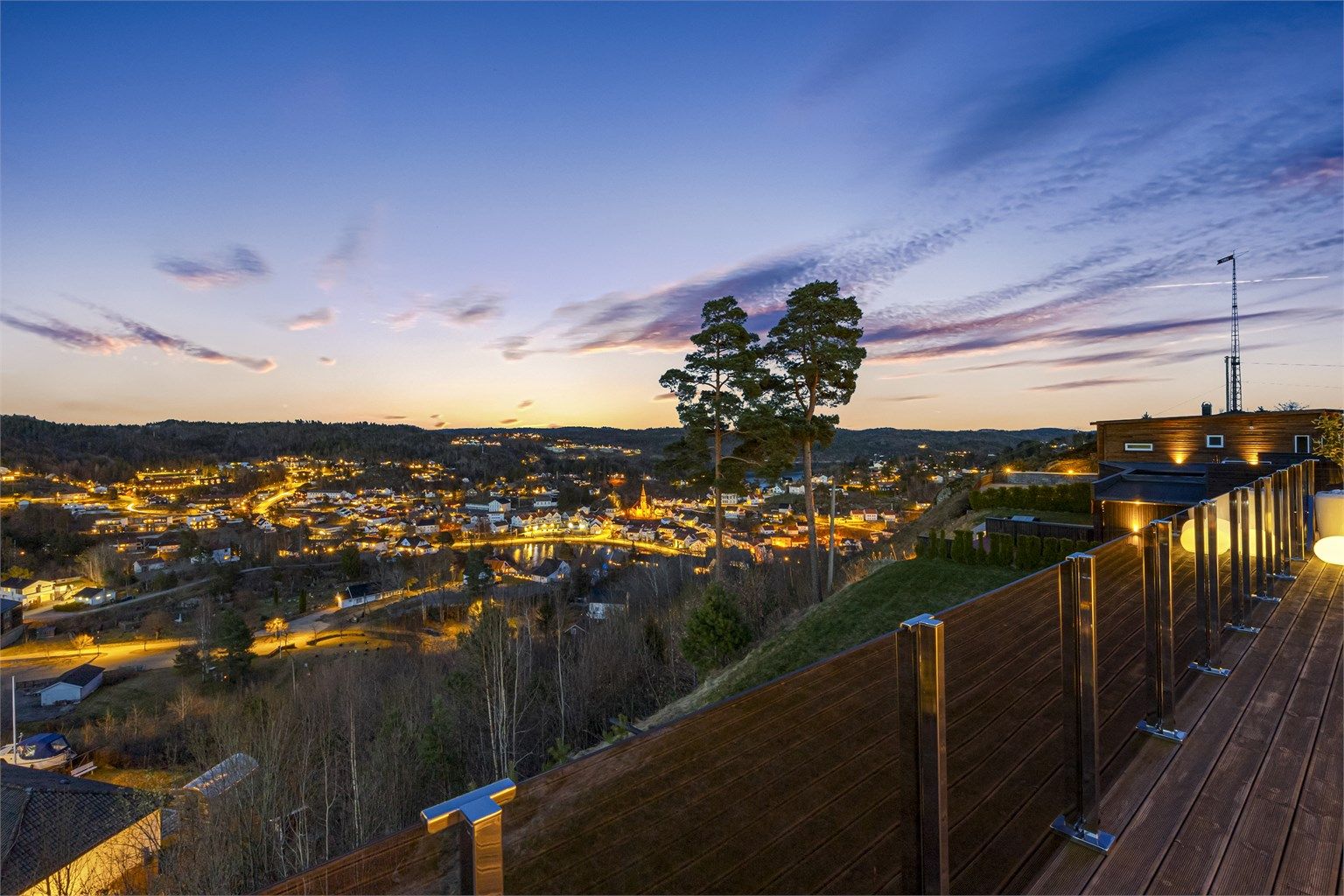 Lindveien 29 er helt unik og er en sjelden mulighet i markedet. Villaen er helt rå på både løsninger, beliggenhet og standard. Utsikten er helt nydelig med fritt utsyn til Tjenna, fjorden og havet. Eiendommen har sol fra tidlig morgen til litt over kl. 22:00 midtsommers og ligger på en endetomt. Det er utsikt og gangvei til sentrum og områdene rundt, både på sti og vei. Villaen har hele fem soverom, vaskerom, to baderom + gjestetoalett, to stuer, hall/entré, teknisk rom, bod, grovkjøkken, kjøkken og takterrasse, samt garasje (ca. 70m²). Tomten er på 1.995,5m² og er opparbeidet med heller, terrasser, hage, plen og mye mer.