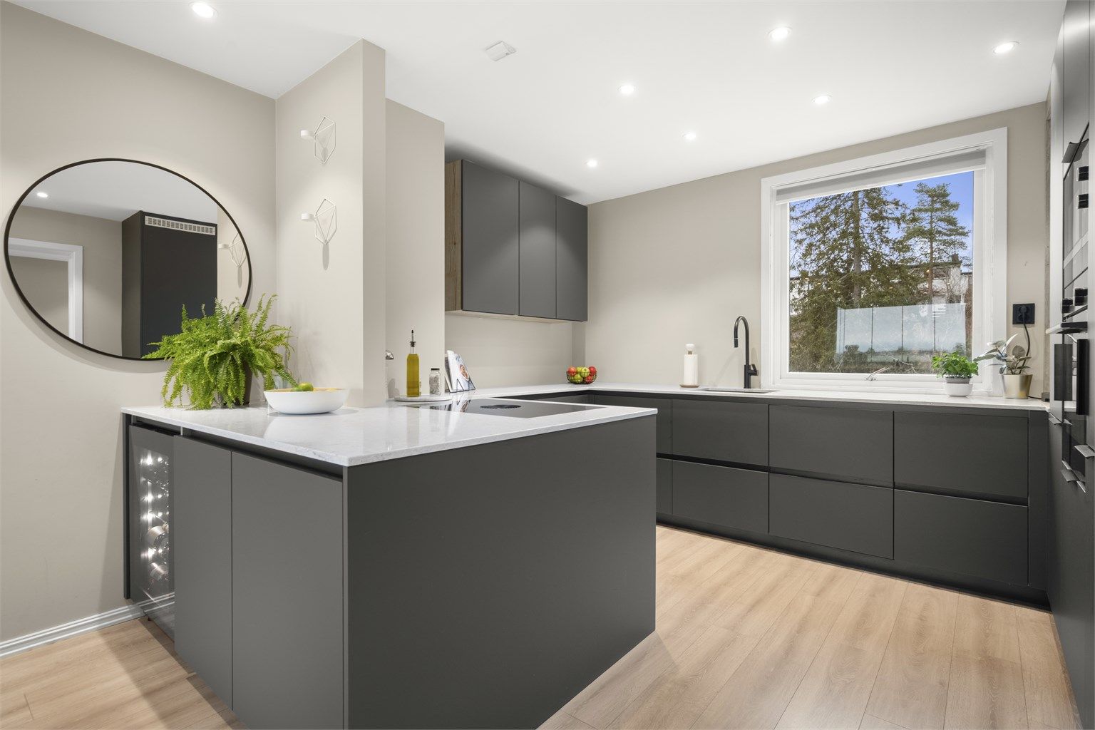 - Høykvalitets kjøkken fra Rotpunkt, med bl.a. benkeplate av stein og flere elegante detaljer