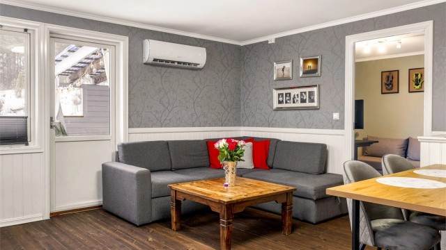 Varmepumpe i stuen og gulvvarme i alle rom, ellers elektrisk oppvarming. Dersom beboelsesrom ikke har vegg- eller fastmonterte varmekilder ved visning, følger dette heller ikke med.