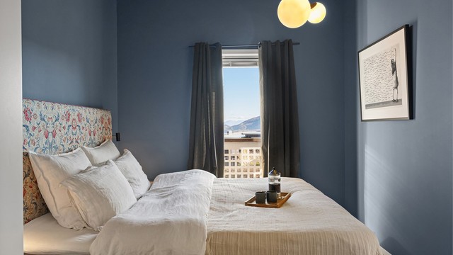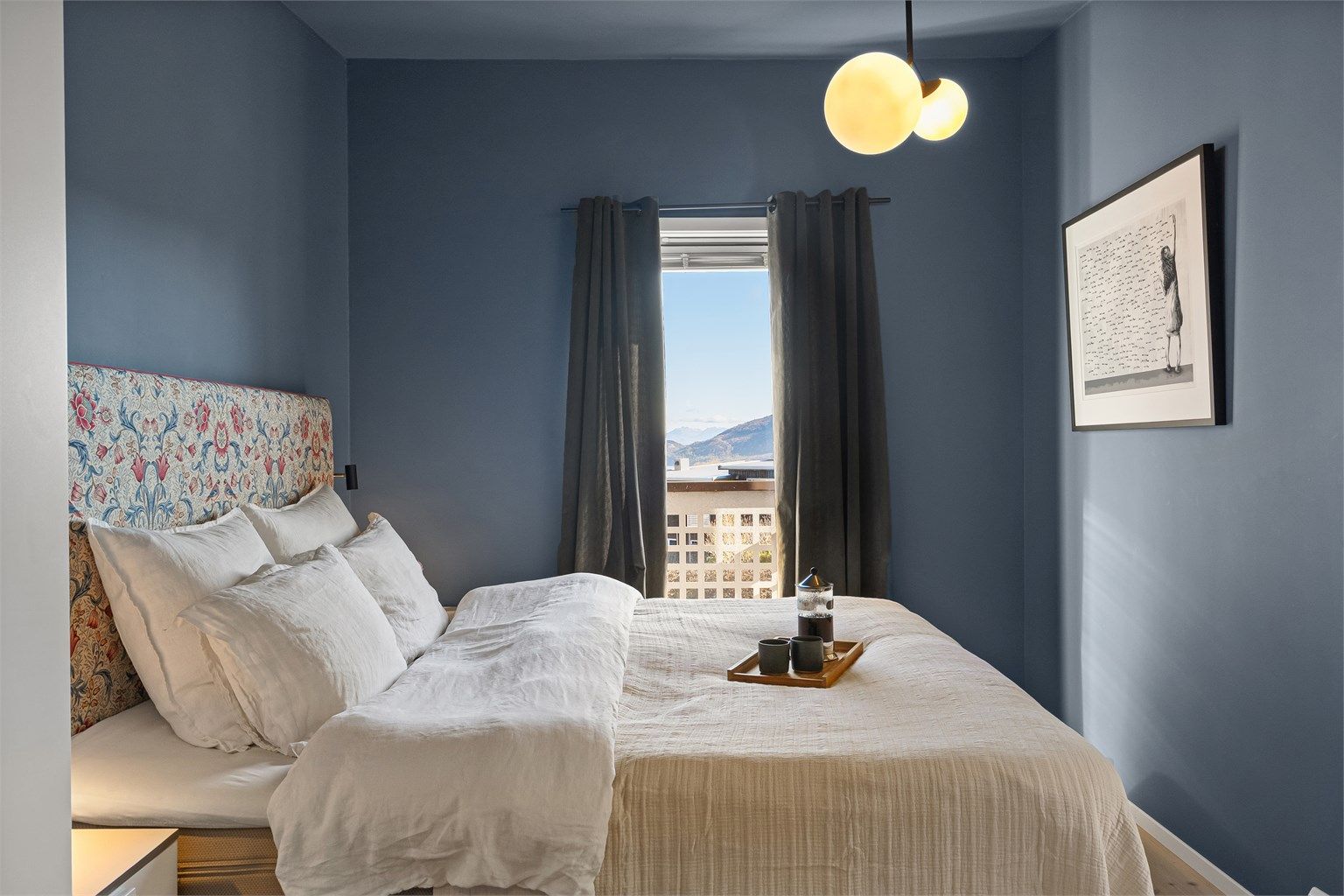 1. etasje 59 kvm: Entré, bad, 2 soverom og kjøkken.