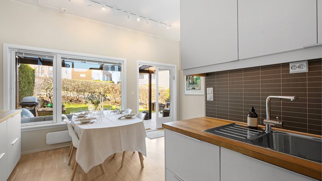 Attraktivt og innholdsrikt rekkehus over fire plan i et svært populært boligområde. Flott sjøutsikt.