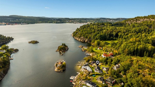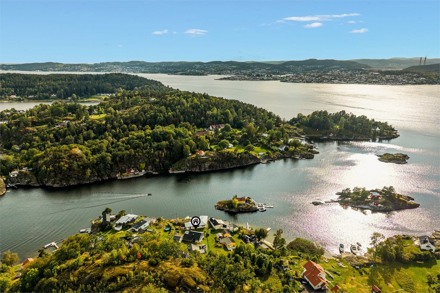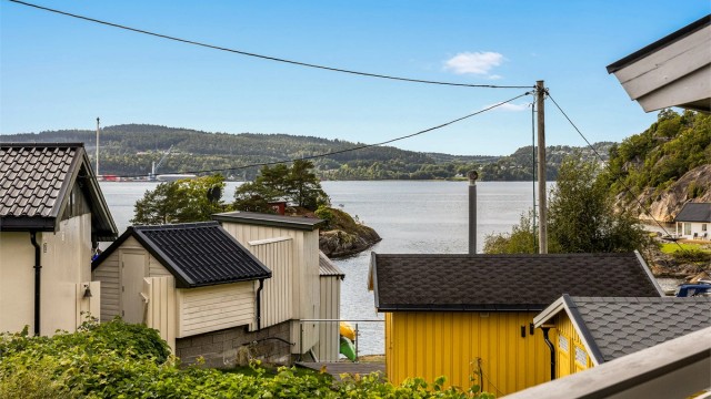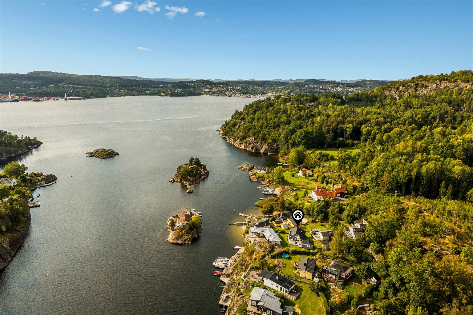 Sommerparadis med fin sjøutsikt og solrik beliggenhet. Parkering og båtplass.