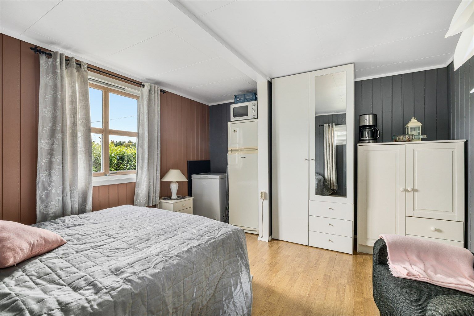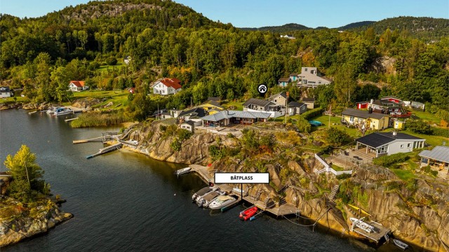 Hytta ligger i en liten, hyggelig grend, bare 50 meter fra sjøen med egen båtplass og strand rett nedenfor. Med ca. 400 meter til biloppstillingsplass kan sommeren nytes i et hyggelig miljø. Hytta er modernisert og oppgradert innvendig over tid. Tomten er flat med gressplen og store terrasser med lune uteplasser med overbygg. Anneks.