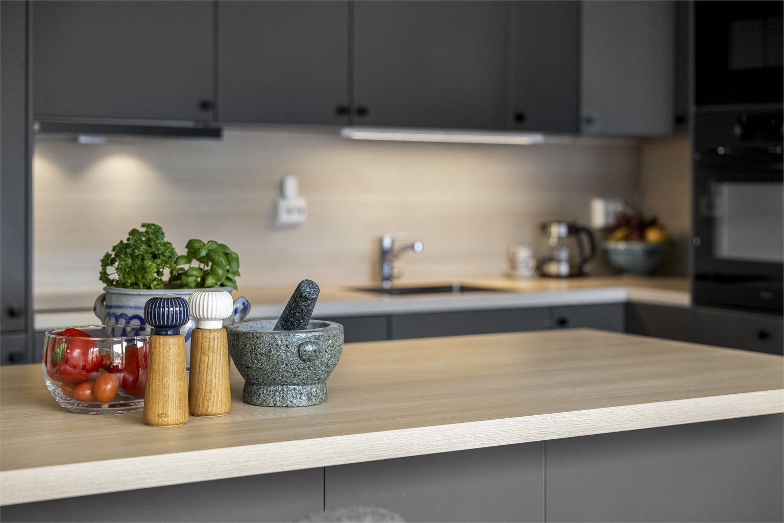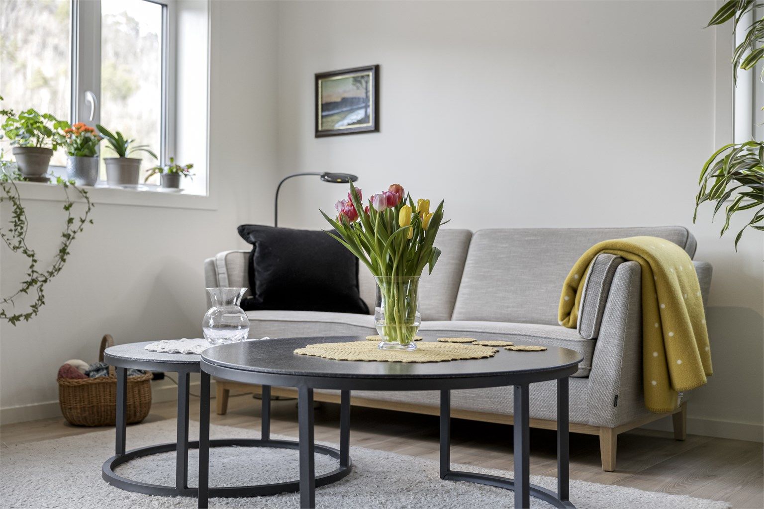 Her bor du i en ny og lettstelt bolig med kort gangavstand til sentrum på ca. 300 meter. Det er også nærhet til matbutikk, bussholdeplass, badepark, sjøen og mye mer. Leiligheten er lekker og innbydende med praktiske løsninger for en enkel hverdag.