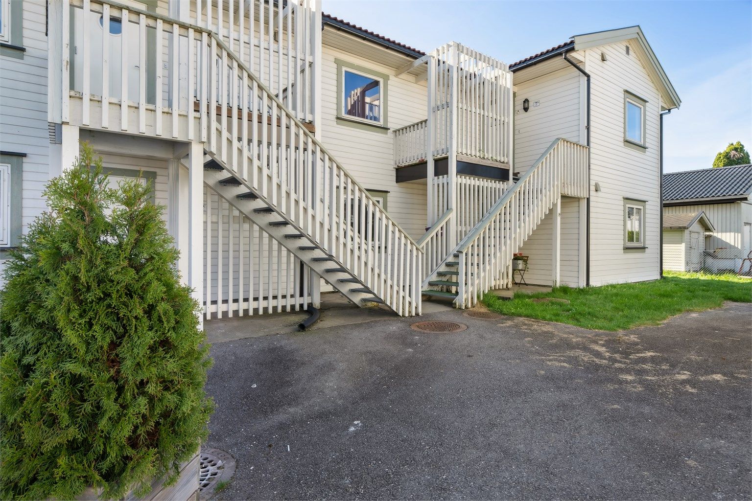 Praktisk beliggende i 1. etasje med en arealeffektiv og god planløsning. Leiligheten rommer entré, stue i delvis åpen løsning med kjøkken, flislagt bad med gulvvarme, tre gode soverom og bod. Det er overbygd og steinbelagt platting på ca. 12 kvm med god plass for sittegruppe. Det disponeres parkeringsplass i carport og utebod.