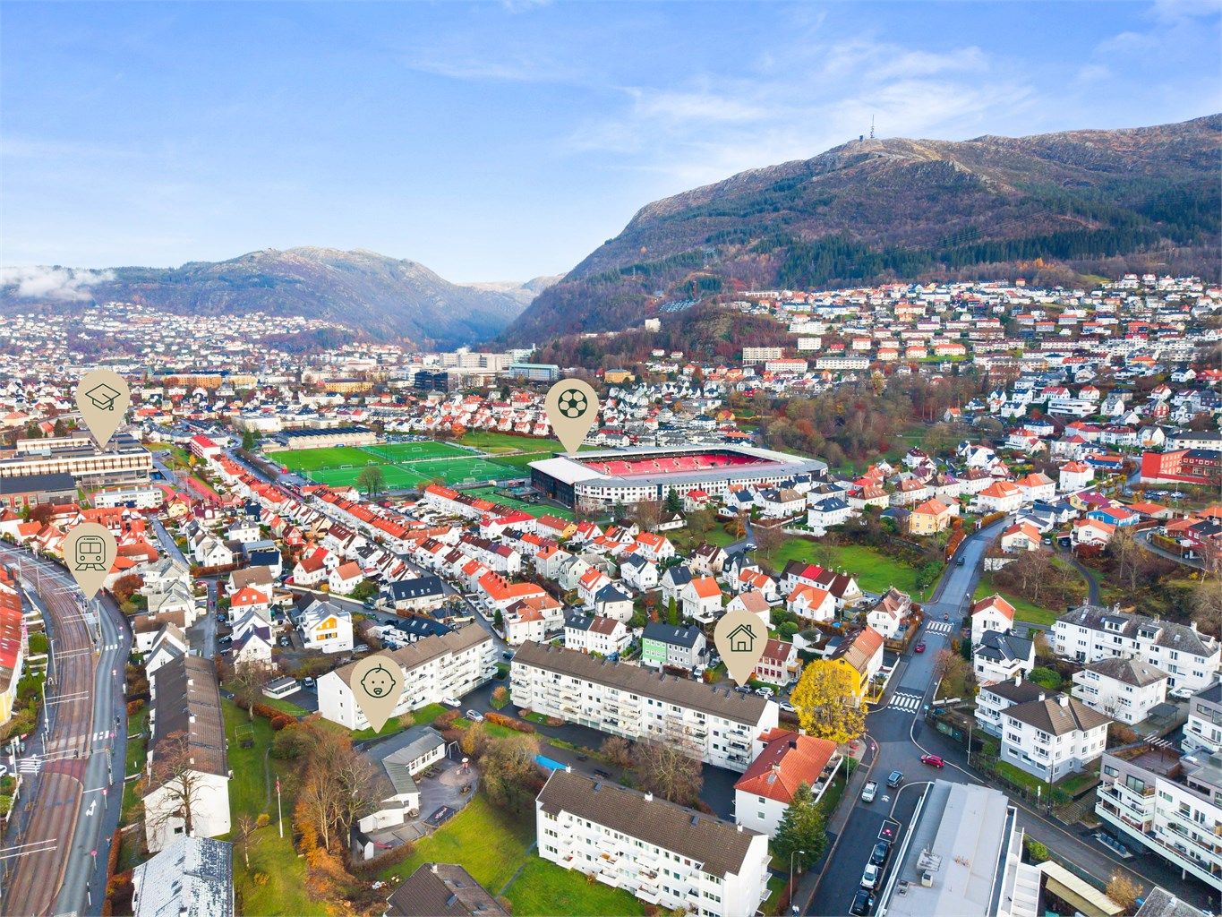 En lys og trivelig 3-roms aksjeleilighet på Minde. Leiligheten har en stor vestvendt balkong, to romslige soverom og bad og kjøkken oppgradert i 2016 og 2018. Fra entrèdør er det inngangsparti med god plass til oppbevaring, helfliset bad med opplegg for vaskemaskin, stort og lyst kjøkken, romslig stue med utgang til balkongen og to soverom. Her bor du i nærhet til bybanen, treningssentre, dagligvarebutikker, Høgskulen på Vestlandet og Brann Stadion!