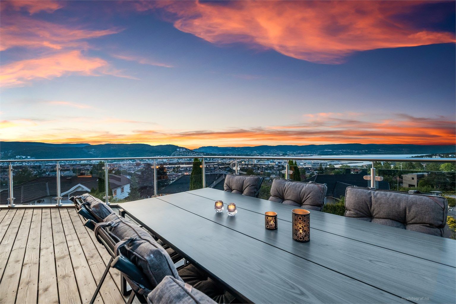 Nordøstvendt altan på ca. 36 kvm med motoriserte markiser og imp. terrassebord