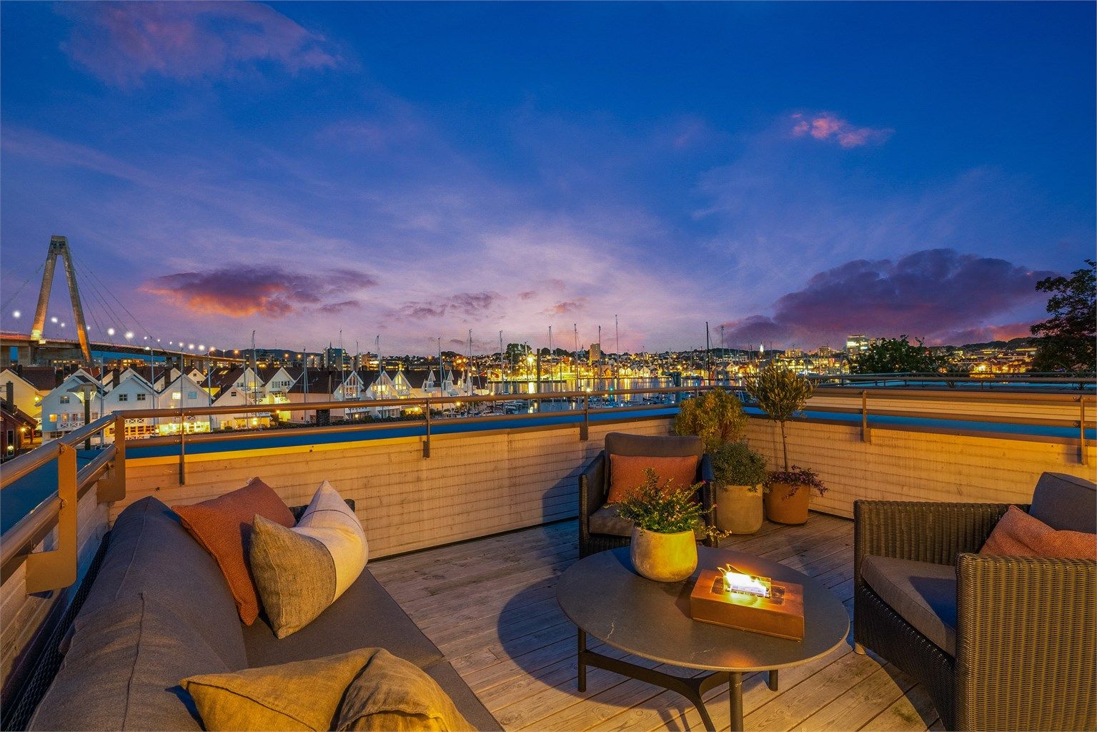 Herlig takterrasse med sol fra 07 til ca 17.30.