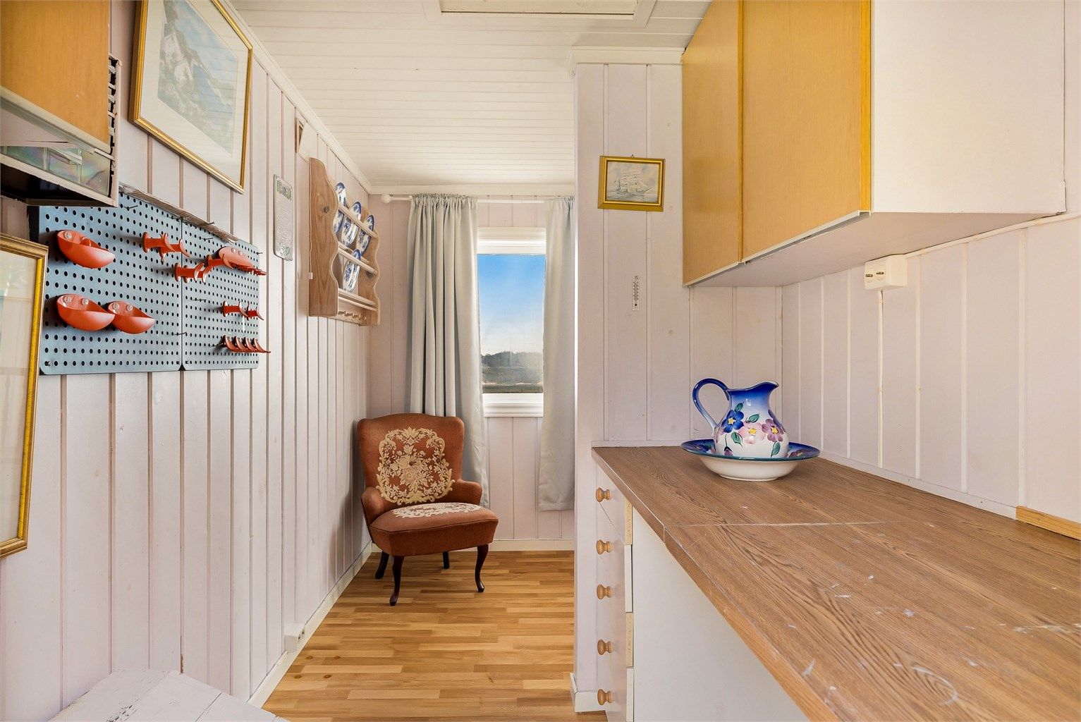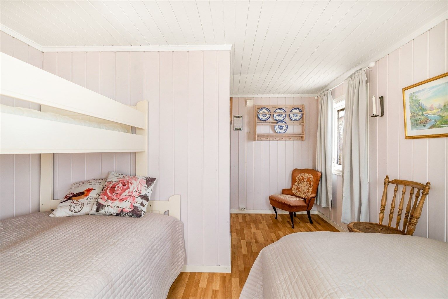 Hytta har også et eget praktisk anneks innredet med belegg på gulv og lyse fargevalg på vegger. En ypperlig plass for gjester eller storfamilien med behov for flere overnattingsmuligheter. Her får du også nydelig utsikt til sjøen. I tilknytning til annekset finnes det også en bod.