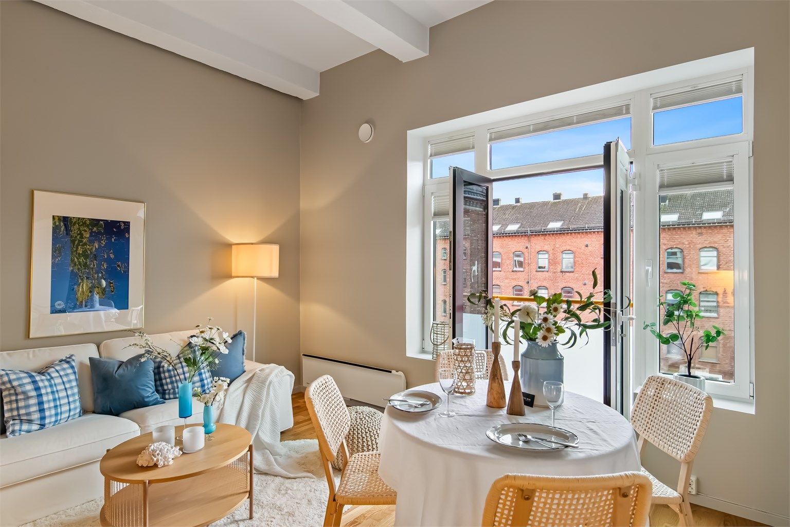 Velkommen til en innbydende og velholdt 2-roms eierleilighet med attraktiv hjørnebeliggenhet i 3. etasje i en klassisk bygård fra 1917 – midt i hjertet av Tønsberg. Her bor du med alt du trenger rett utenfor døren: Kino, kulturhus, svømmehall, bibliotek og idrettsanlegg i gangavstand, samt byens pulserende restaurant- og uteliv langs brygga. Leiligheten har god standard etter oppgraderinger i 2010 og nyere oppussing i 2025. Med over 3 meters takhøyde, fransk balkong, store vinduer og smakfulle materialvalg, får du et lyst og luftig oppholdsrom. Praktisk kjøkken, stilrent bad og hele 17 kvm hems gir ekstra oppbevaringsplass. Kort vei til tog og buss – perfekt for deg som pendler.
