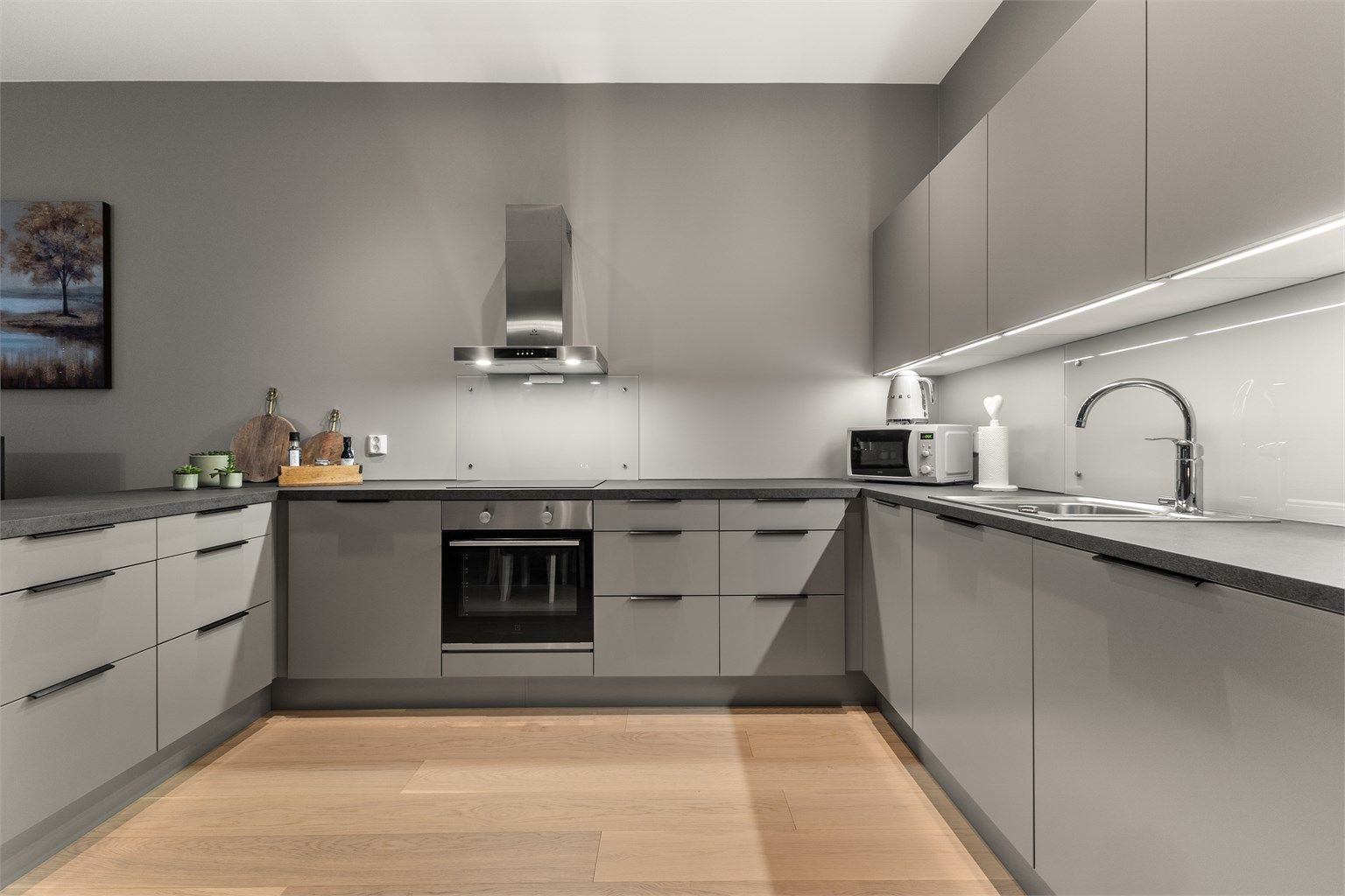 Moderne HTH kjøkkeninnredning med helintegrerte hvitevarer