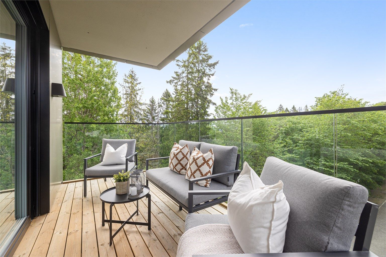 - Utgang fra stue/kjøkken til to balkonger, vendt mot hhv. Syd og øst