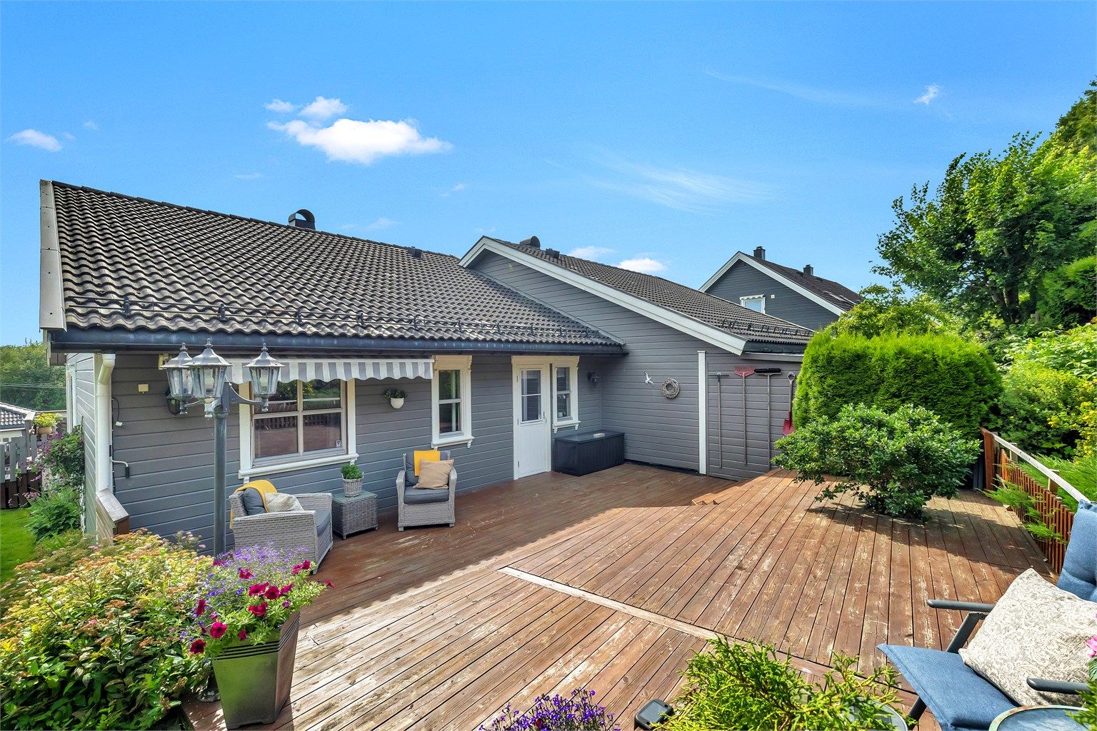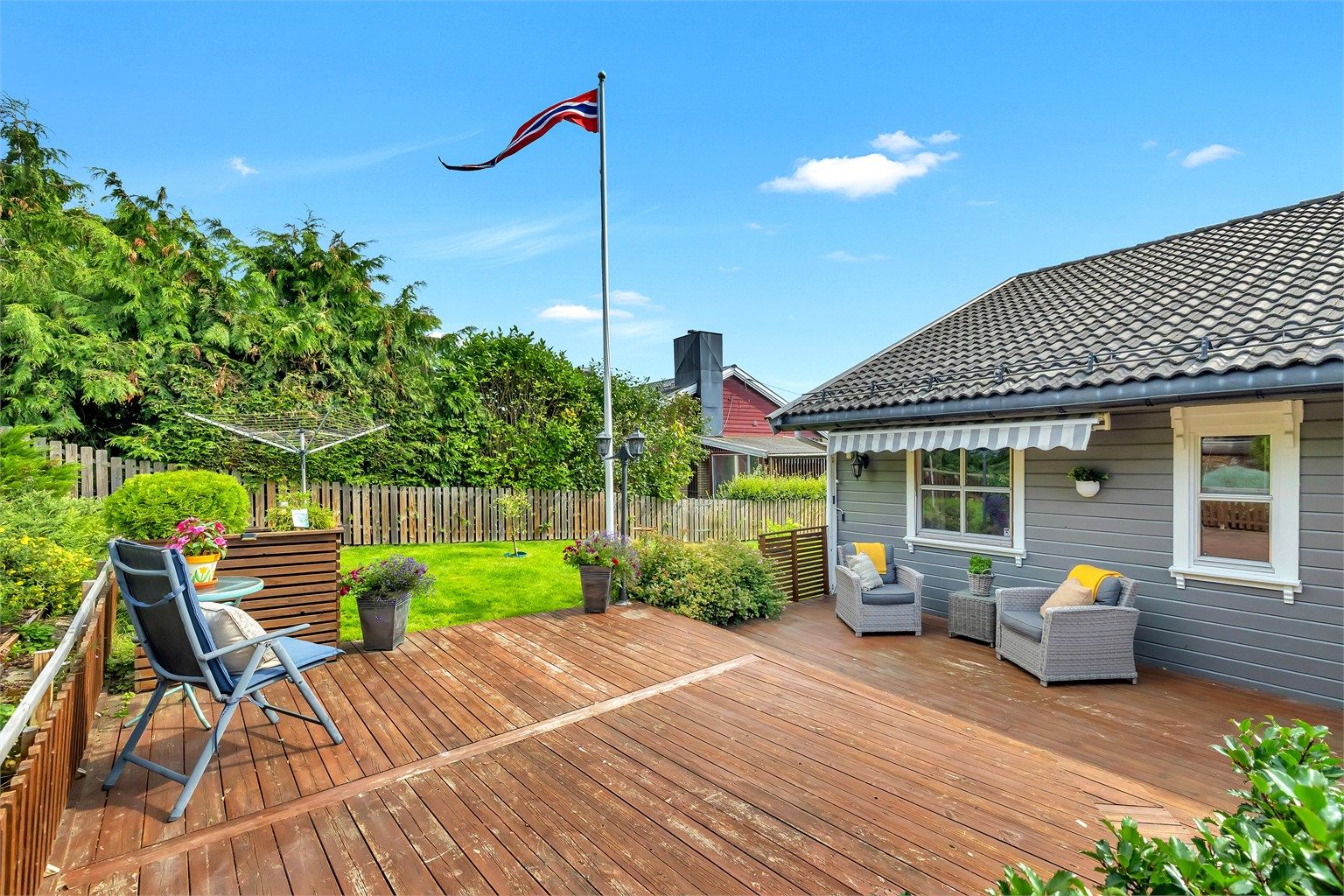 Eiendommen er pent opparbeidet og har solrike uteområder der du har solen hele dagen.