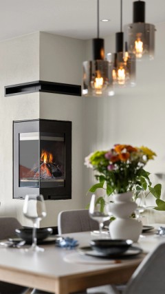 Lys og luftig stue med åpen kjøkkenløsning. Stuen er romslig og har store vindusflater som gir godt med naturlig lys, samtidig som man kan nyte utsikten. Rommet er holdt i lyse, moderne farger som står godt mot det lyse laminatgulvet. Det er god plass til stor sofagruppe, i tillegg til spisebord i tilknytning til kjøkkenet. Den moderne peisinnsatsen er et blikkfang i rommet og gir godt med varme på kalde vinterdager. Fra stuen er det utgang til balkongen via balkongdør som var ny i 2021.