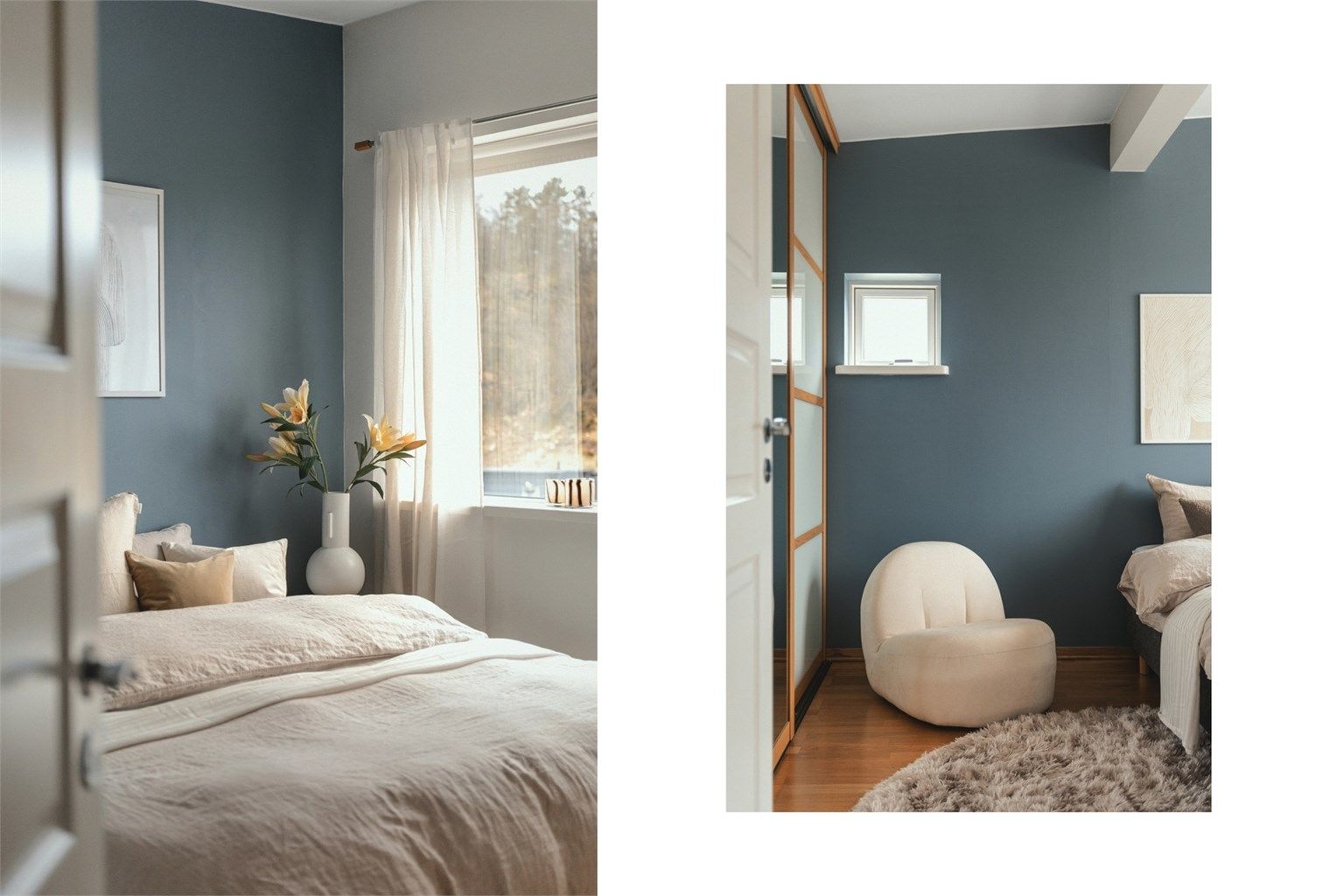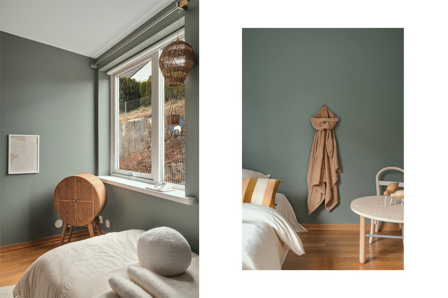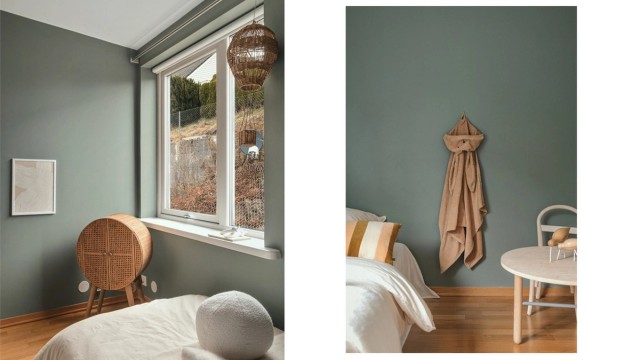 Soverom 3 har parkett på gulv, malte vegger og malt tak.