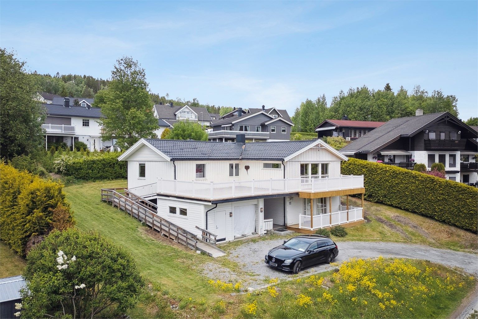 Stor enebolig med egen utleiedel i underetasjen. Hoveddelen består av romslig stue, kjøkken i egen sone, 2 soverom, baderom, samt flere rom i underetasjen. Stor utleiedel med åpen stue og kjøkkenløsning, 2 soverom, baderom og bod. Fra hoveddel er det utgang til både terrasse og stor balkong med fint utsyn. For utleiedel er det utgang til overbygd terrasse fra stue. Parkering i enkeltgarasje i underetasjen samt øvrige biloppstillingsplasser på tomten.