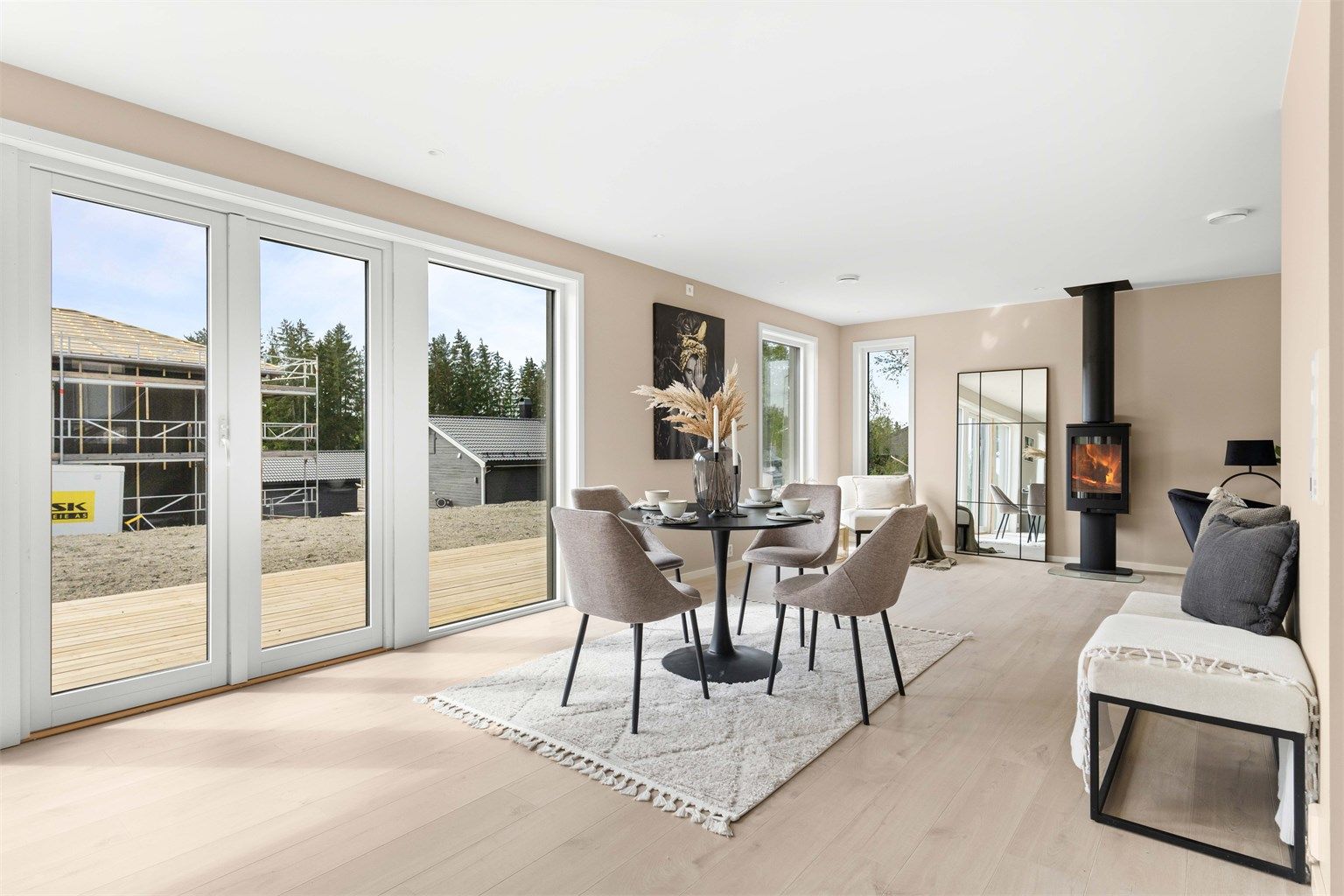Velkommen til en lys og moderne enebolig med gjennomtenkt planløsning og god standard. Åpen kjøkken- og stueløsning med store vindusflater, gulvvarme, ildsted og utgang til terrasse og hage. Kjøkkenet har integrerte hvitevarer og godt med benke- og lagringsplass. Boligen har to stilrene bad med gulvvarme, hvorav ett med badekar. Fire romslige soverom i 2. etasje, samt loftstue. Praktisk entré med fliser og varmekabler. Sportsbod med inngang både ute- og innenfra, samt terrasse på ca. 40 kvm som gir gode oppholdsmuligheter. En familievennlig bolig med alt du trenger for en komfortabel hverdag. Området er perfekt for barnefamilier, med trygge omgivelser og kort vei til både skog og lekeplass. Barnehage, barneskole og bussforbindelser i gangavstand gjør hverdagen enkel og bekymringsfri.