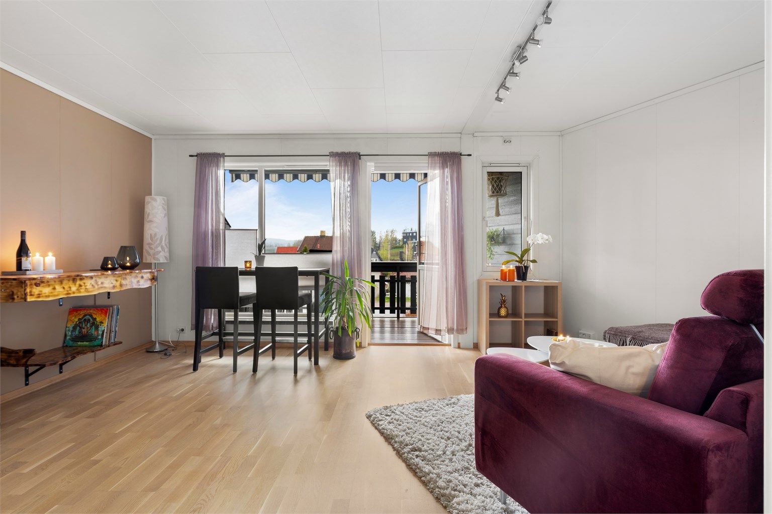 - Lys og luftig leilighet med åpen stue-/kjøkkenløsning