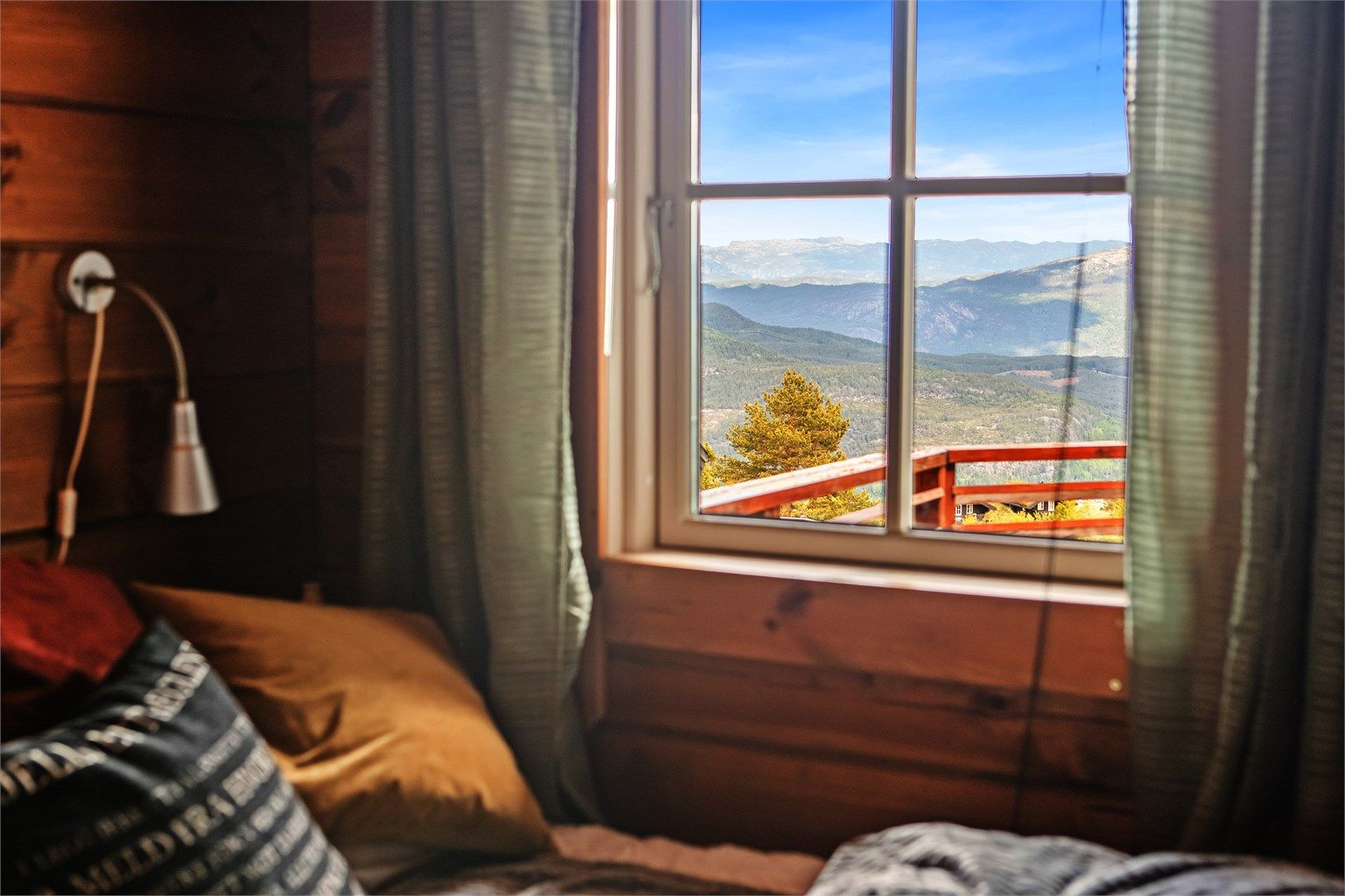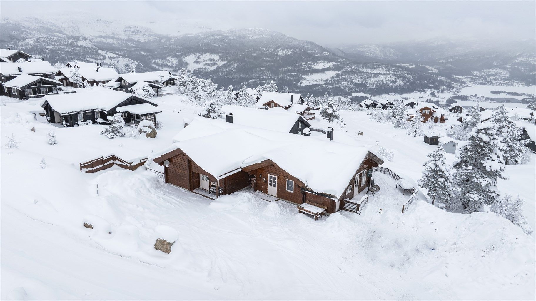 Hytta ligger flott til i terrenget, med svært gode solforhold. Den romslige terrassen gir flere lune soner – perfekt for både rolige morgenstunder og sosiale kvelder rundt bålpanna. Herfra nytes en storslått utsikt over Vrådal og omkringliggende fjellkjeder – et vakkert skue året rundt.