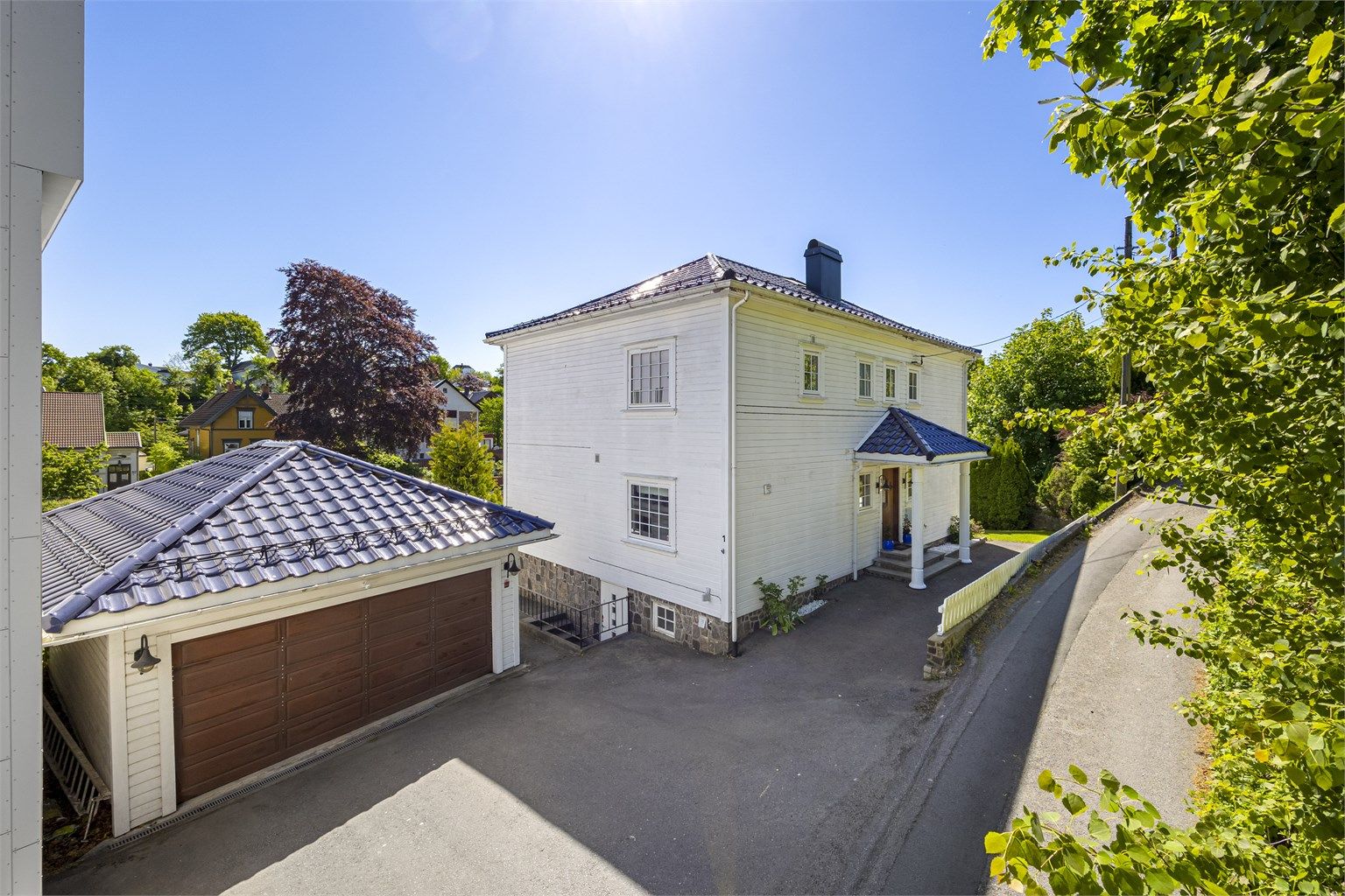 Fantastisk plassert byvilla med utleieleilighet - Passe tilbaketrukket med usjenert hage med beplantning. Eiendommen har gode solforhold og ligger meget sentralt til, det er ca. 9 minutters gange til sentrum. Leilighet i underetasjen ble godkjent i 2025 og var sist leid ut for kr. 12.500,-pr. mnd. ekskl. strøm. Det tilhører dobbel garasje fra ca. 2004. Velholdt bolig som går over tre etasjer med mange finessér som fransk dør inn til stue, store vindusflater, balkong og mye mer.